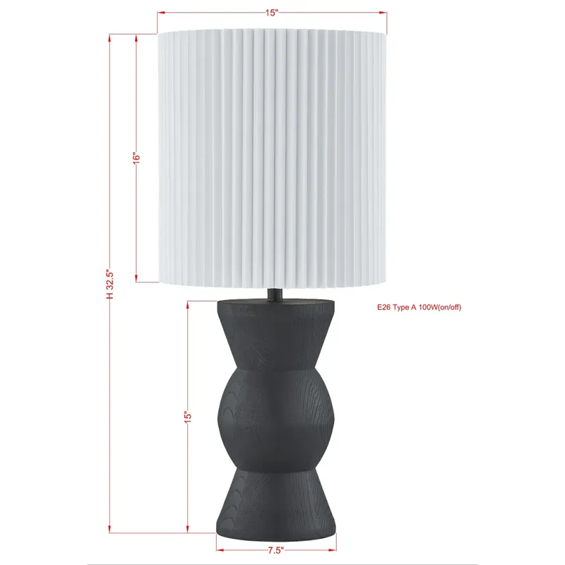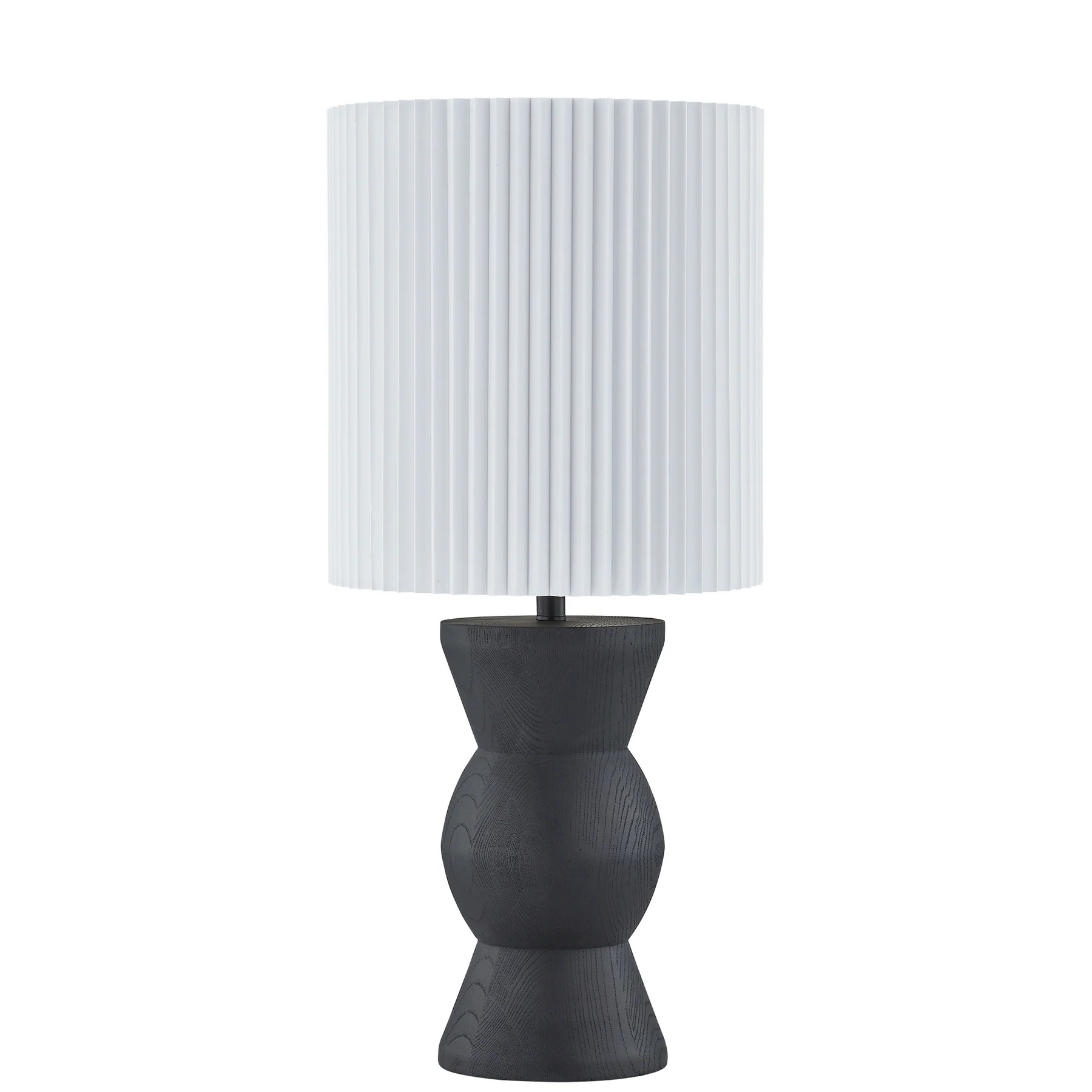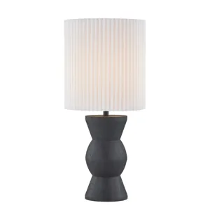 Dottie Table Lamp - Why choose between art and lighting when you can have both? This striking lamp makes a bold statement with its angular silhouette, sculptural base, and rich black finish. Topped with a pleated white drum shade, the contrast enhances its modern appeal while adding depth and dimension. Perfect for styling on sofa tables or nightstands, it effortlessly elevates any space with a cool, modern touch.