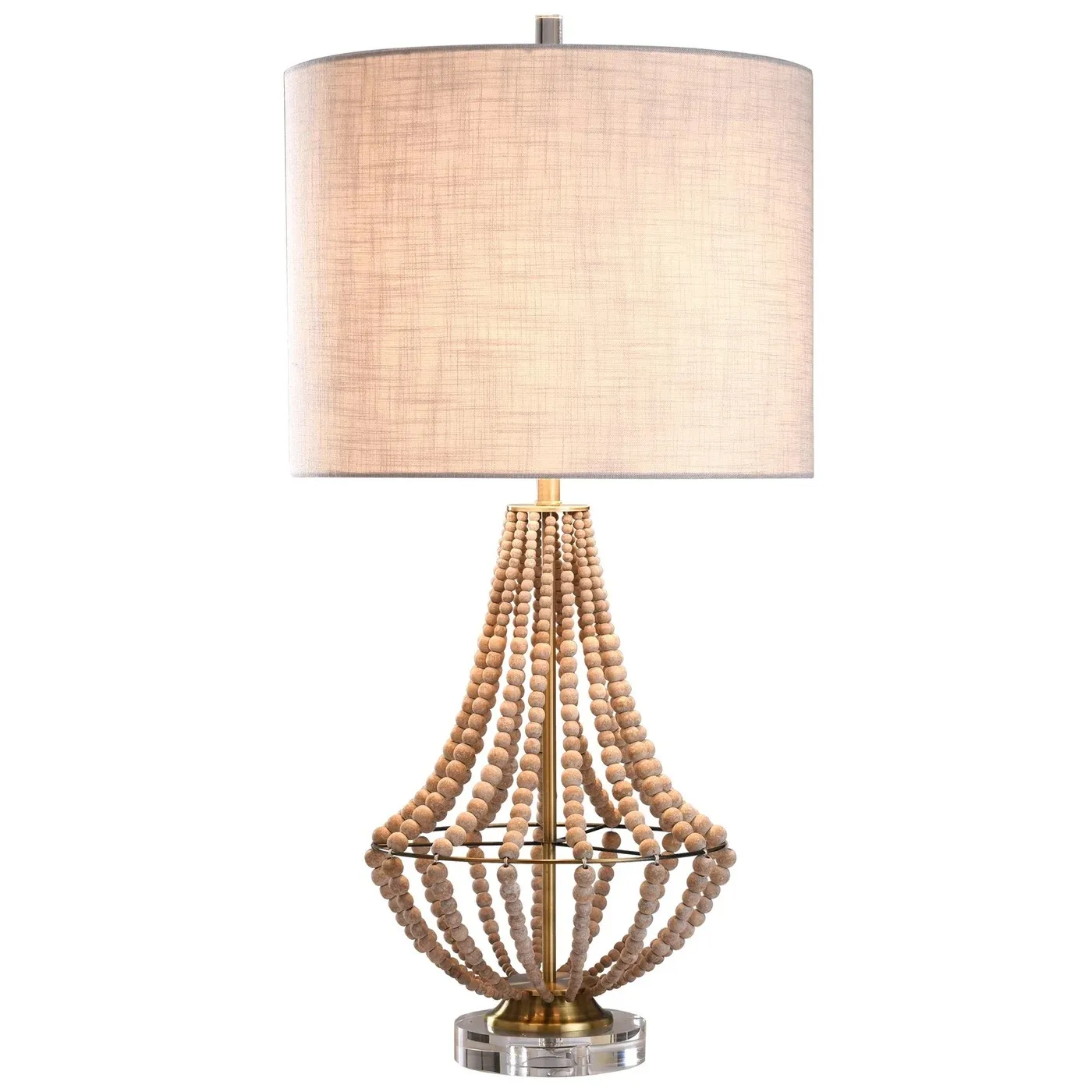 AURORA TABLE LAMP | Natural Wood Bead Body with Metal Base | Hardback Shade | 150 Watt