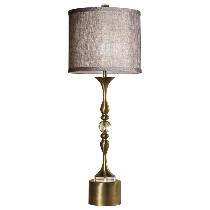 TANGA TABLE LAMP | Matte Antique Brass Finish on Metal Body with Crystal Ball and Disc | Hardback Shade