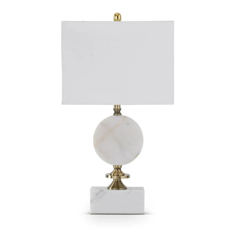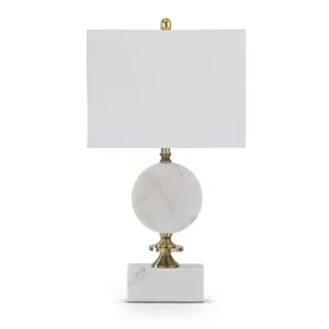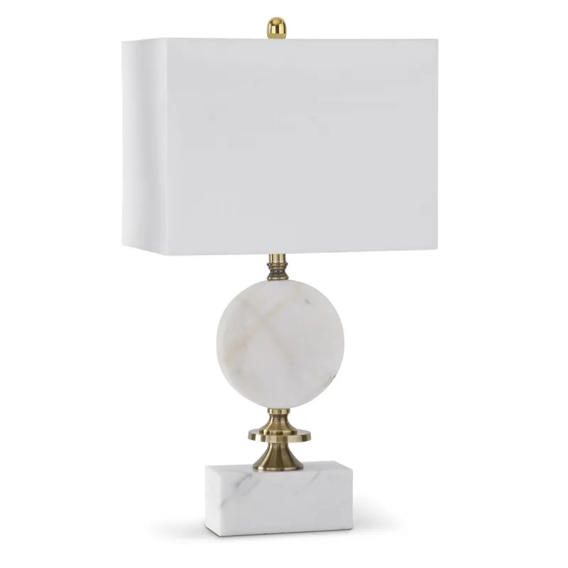 30" Arabescato White Marble & Gold Disc Lamp w/Rectangular Shade