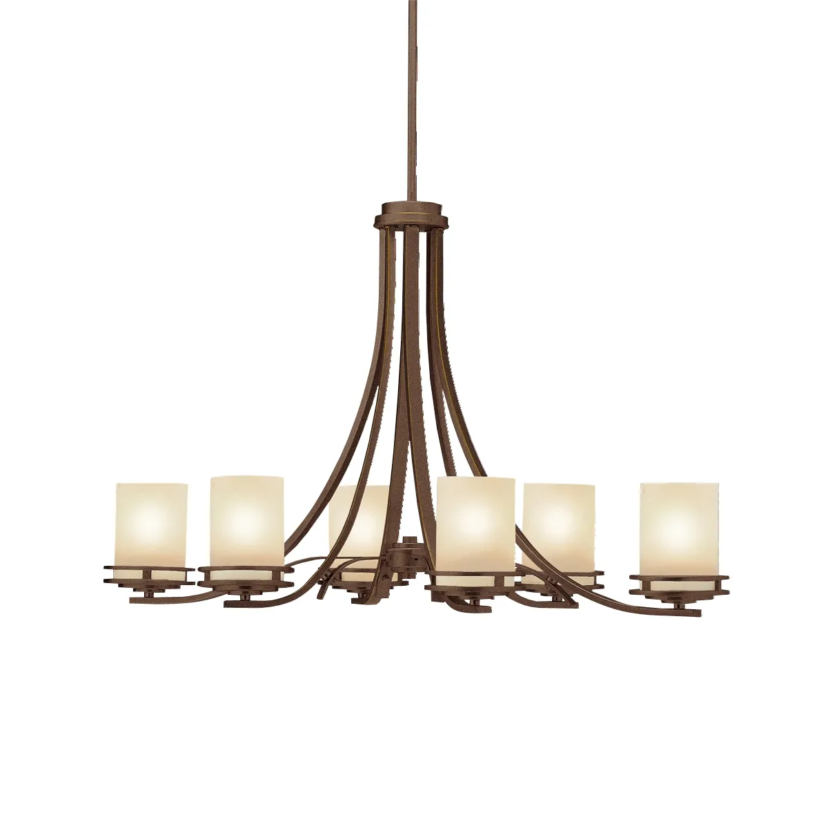 Named after renowned Dutch architect, Hendrik Berlage, the Hendrik Collection is a gorgeous family of contemporary fixtures that honor the man who was regarded by many as the "Father of Modern architecture". Much like Berlage himself, The Hendrik Collection is regarded as an intermediary between modern and traditional styles. Classic lines are enhanced with a soft touch of current style cues to work in a number of aesthetic environments. The warm hue of our Olde Bronze finish is partnered withsatin-etched glass for a fantastic balance of natural color. The oval body shape of the 6-light Hendrik Chandelier uses 100-watt max. bulbs, measures 36" long with a body height of 23". It comes complete with 104" of extra lead wire as well, allowing for easy installation.