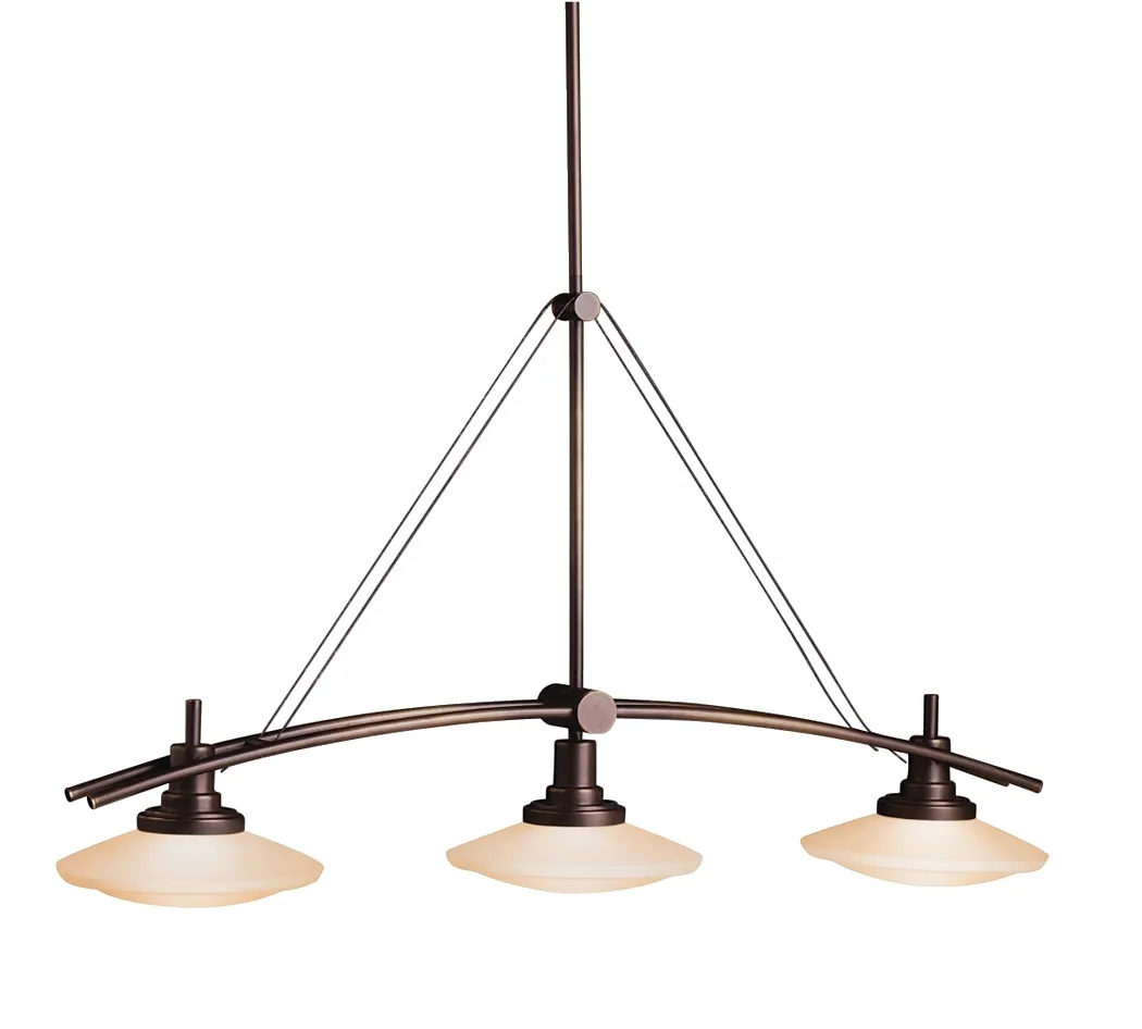 This 3 light linear chandelier from the Structures Collection proves that one style can take on numerous forms. Our Olde Bronze finish and light umber glass, bring an antique touch to the fixture. For a modern spin on the classic island light, the Structures Collection recommends this outstanding fixture whose clean, simple lines will highlight any decor.