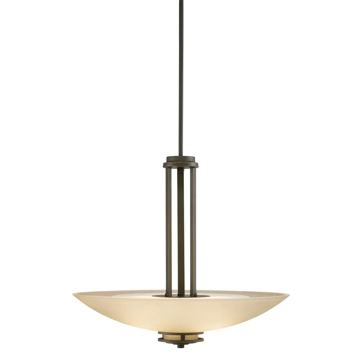 Named after renowned Dutch architect, Hendrik Berlage, the Hendrik Collection is a gorgeous family of contemporary fixtures that honor the man who was regarded by many as the "Father of Modern architecture". Much like Berlage himself, The Hendrik Collection is regarded as an intermediary between modern and traditional styles. Classic lines are enhanced with a soft touch of current style cues to work in a number of aesthetic environments. The warm hue of our Olde Bronze finish is partnered with light umber etched glass for a fantastic balance of natural color. The 3-light Hendrik Pendant uses 100-watt max. bulbs, measures 24" in diameter with a body height of 22". It comes complete with 104" of extra lead wire as well, allowing for easy installation.