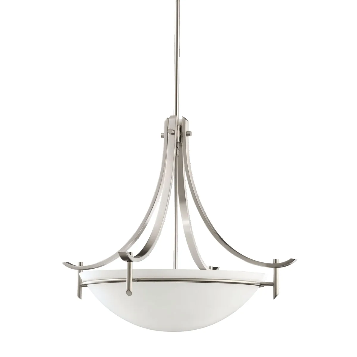 The Olympia Collection brings a modern twist on the classic aesthetic to create a new form the likes of which has not been seen before. The curvilinear, flowing arms create a clean, contemporary profile for your home. The Antique Pewter finish combined with Satin-etched white glass presents a natural color palate capable of matching any dcor. For a simple approach, the Olympia Collection offers its unique look as an inspirational pendant. It uses a 3-light design that requires 150-watt max. bulbs to light the satin-etched white glass cover, creating a glowing bottom of light with chic sophistication.