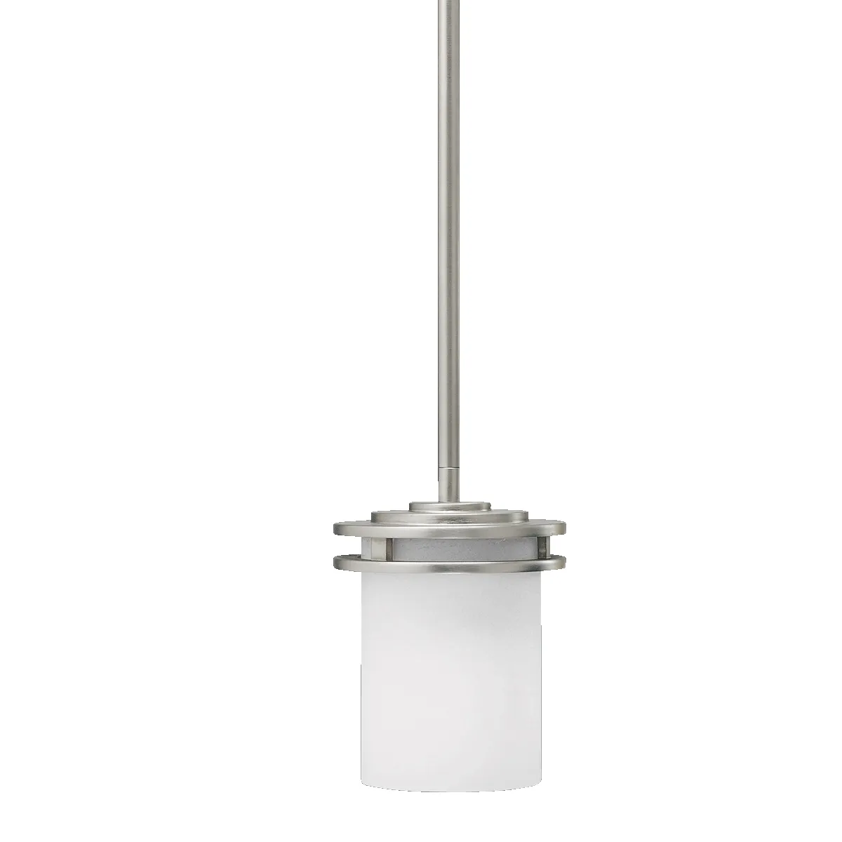 Named after renowned Dutch architect, Hendrik Berlage, the Hendrik Collection is a gorgeous family of contemporary fixtures that honor the man who was regarded by many as the "Father of Modern architecture". Much like Berlage himself, The Hendrik Collection is regarded as an intermediary between modern and traditional styles. Classic lines are enhanced with a soft touch of current style cues to work in a number of aesthetic environments. The clean look provided by our Brushed Nickel finish is partnered with the Satin-etched cased opal glass for a fantastic pure and frosted color palate. The 1-light Hendrik Mini-Pendant uses a 100-watt max. bulb, measures 5 " in diameter with a body height of 7 ". It comes complete with 104" of extra lead wire as well, allowing for easy installation.