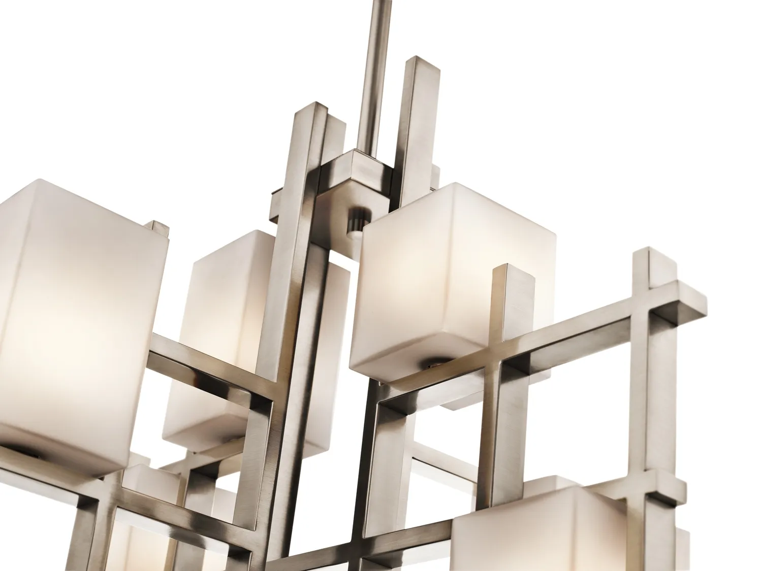 This 7 light chandelier from the City Lights collection is urban, and brings order to big, open spaces infusing city style to a modern home. Sloped ceiling kit included.