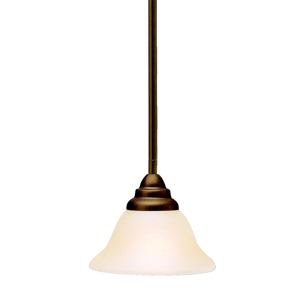 If you're on a tight budget but want timeless styling with a warm color palate and finish, the Telford Collection is the line of lighting you've been looking for. Even with its rich, classically inspired style, The Telford Collection manages to keep a competitive price point adding a level of quality that will accentuate your contemporary home. The beautiful allure of our Olde Bronze finish has been combined with the fresh, frosted look of umber etched glass and applied to a collection of goods that will service every area of the home. The 1-light mini-pendant uses 100-watt max. bulbs and measures 7 " in diameter with a 7" body height. It includes 104" of extra lead wire.