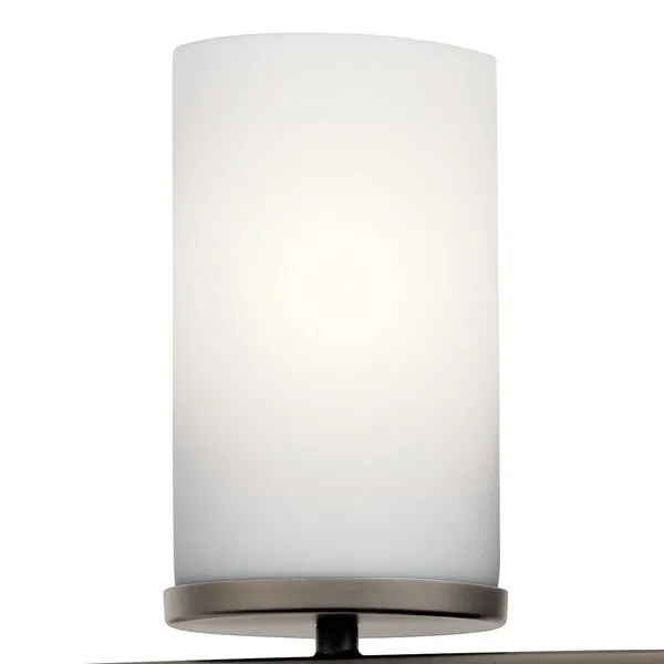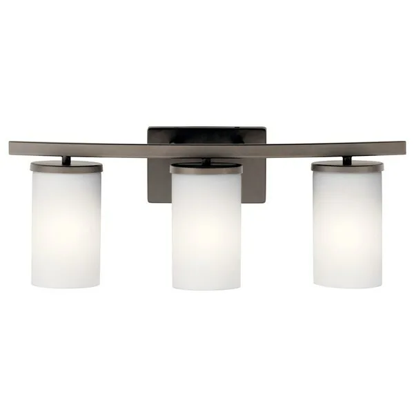 The Crosby 23" 3 light Vanity Light features a contemporary style with its clean lines and metal accents in Olde Bronze® finish and satin etched cased opal. The Crosby vanity light works in several aesthetic environments, including traditional and modern.