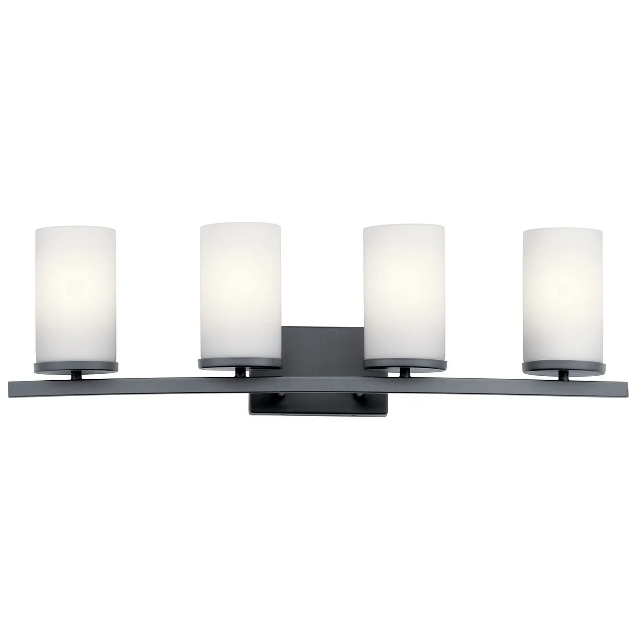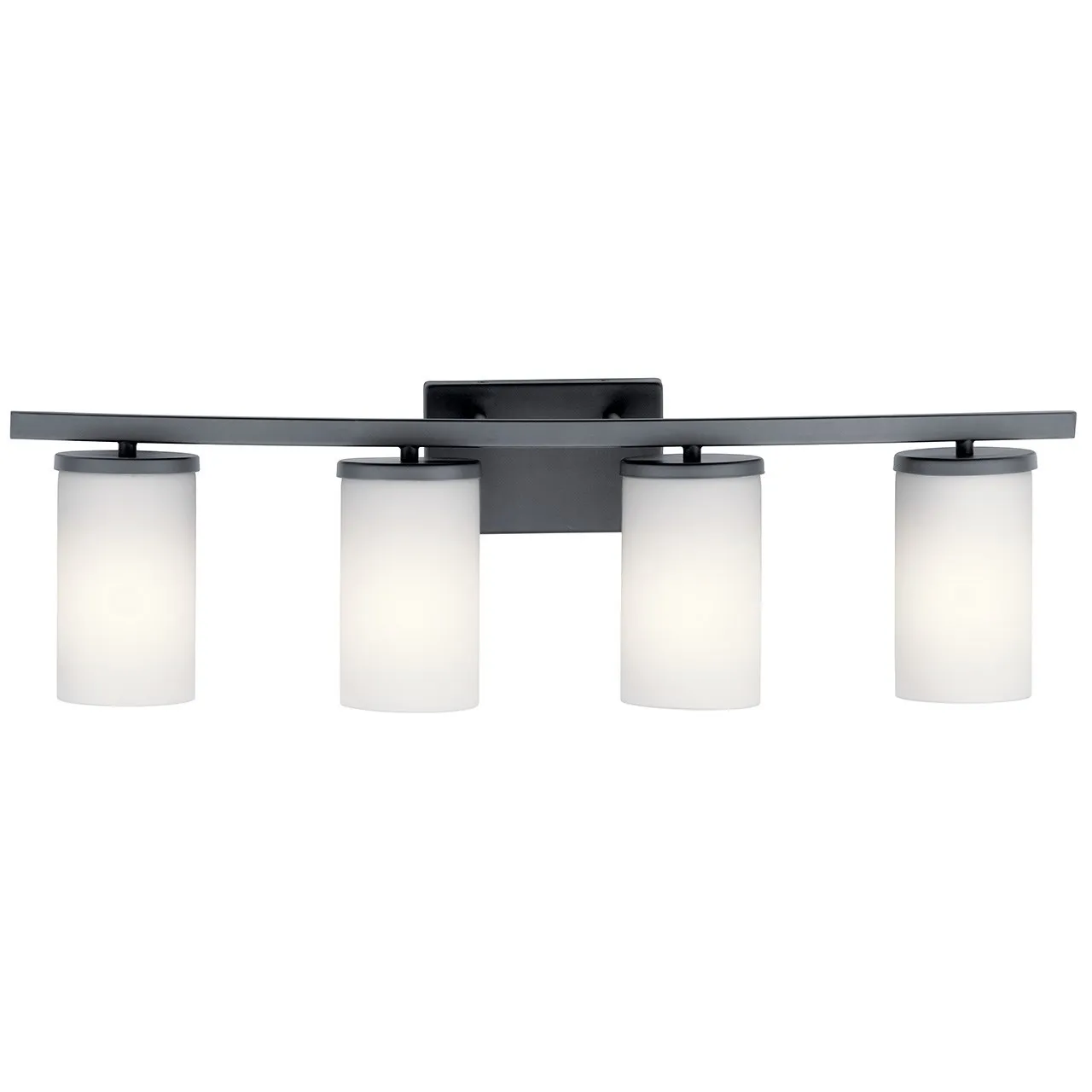 Streamlined and simple, This Crosby 4 light bath light in Black delivers clean lines for a contemporary style. The Satin Etched Cased Opal shades enhance this minimalistic design.