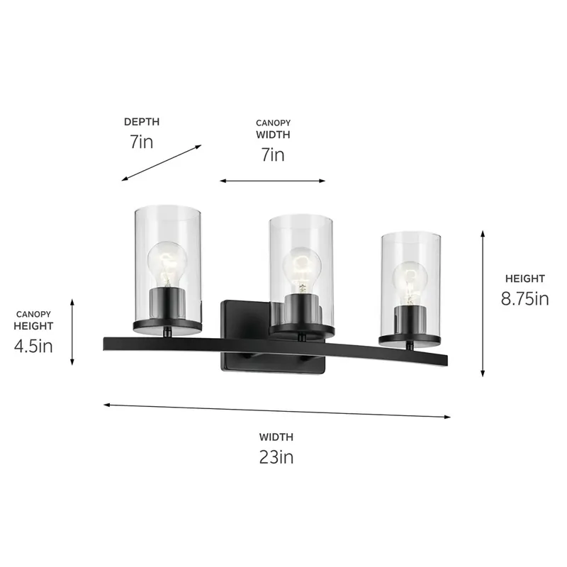 Get a taste of versatility at its finest with the simple look and feel of the Crosby 3-light vanity light. Crosby's streamlined design with clean lines and modest form make it the ideal addition to soft modern environments. Its clear glass shade provides ambient lighting to the entire room and easily incorporates with minimalistic decor.