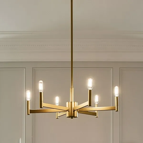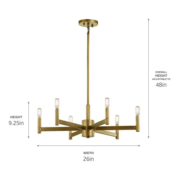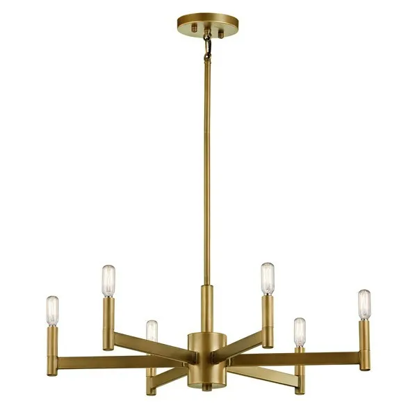 This 6 light chandelier in Natural Brass from the soft contemporary Erzo collection is ideal anywhere you want a modern touch. The simple, sleek lines create a stylish accent for your home.