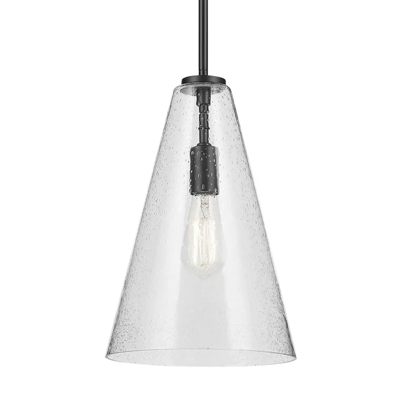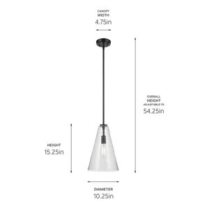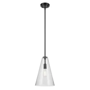 A modern style with minimal detailing, the Everly 1-light pendant easily elevates the style of soft modern environments. This elegant pendant offers a conical form and contemporary, clear glass silhouette that provides ambient lighting to the entire room. As beautiful as it is versatile, adjust the hanging height to meet the needs of your space
