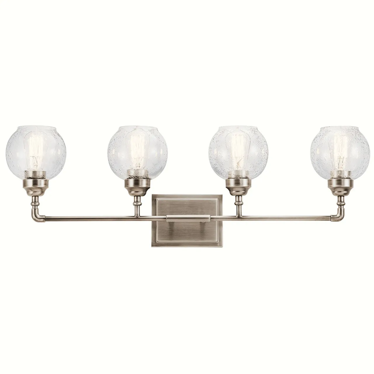 This Niles Antique Pewter 4 light bath light's globe style is reminiscent of fixtures found in historic metropolitan buildings, icons of the industrial era. Niles modernizes the look with clean lines for a look that works in any home.