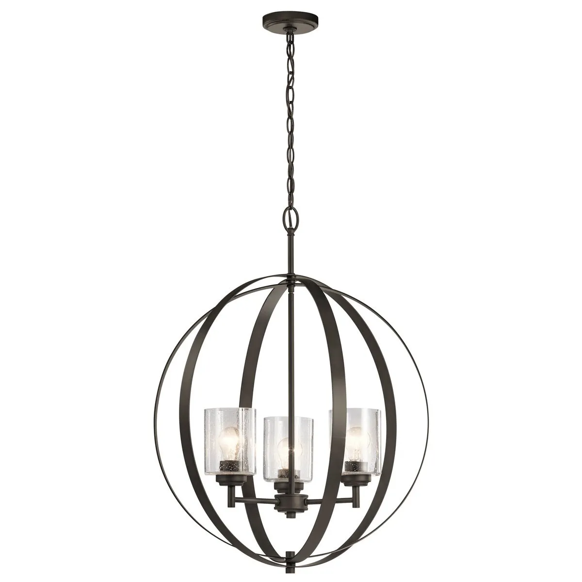 The modern Winslow 3-light chandelier in a Brushed Nickel finish with Clear Seeded glass shade pair beautifully with the linear arms, bringing light and dimension to a space.