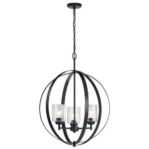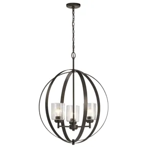 - What's in the Box: Mounting Strap, Strap Mounting Screws, Hex Nuts, Nipple, Screw Collar, Loop, Canopy, Wire Nuts, (9) Glass Shaded and Chain. Bulb(s) not included.