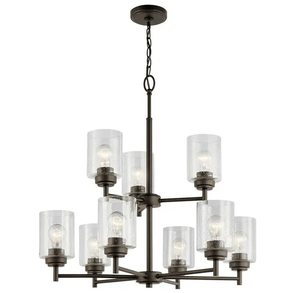The Winslow 27" 9 light 2 tier chandelier features a classic look with its Olde Bronze® finish and clear seeded glass. Winslow chandelier is perfect in several aesthetic environments, including traditional and transitional.