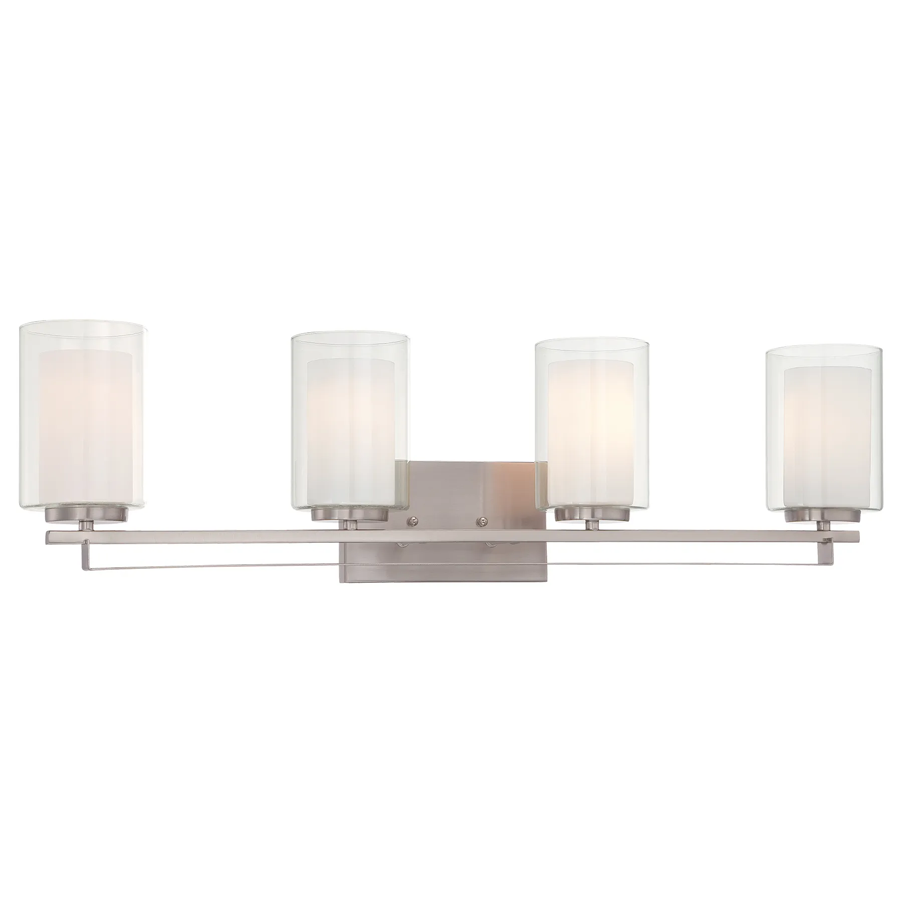 4 Light Bath in Brushed Nickel Finish with Clear and Etched White Glass