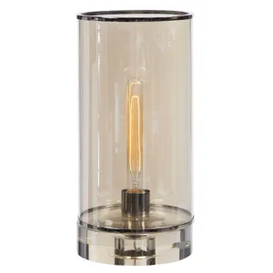 Make a statement with this modern table lamp design. The cast iron base features a porous texture finished in an edgy aged black steel with subtle gold infused highlights, displayed on a thick crystal foot. The rectangle hardback shade is an off-white linen fabric.