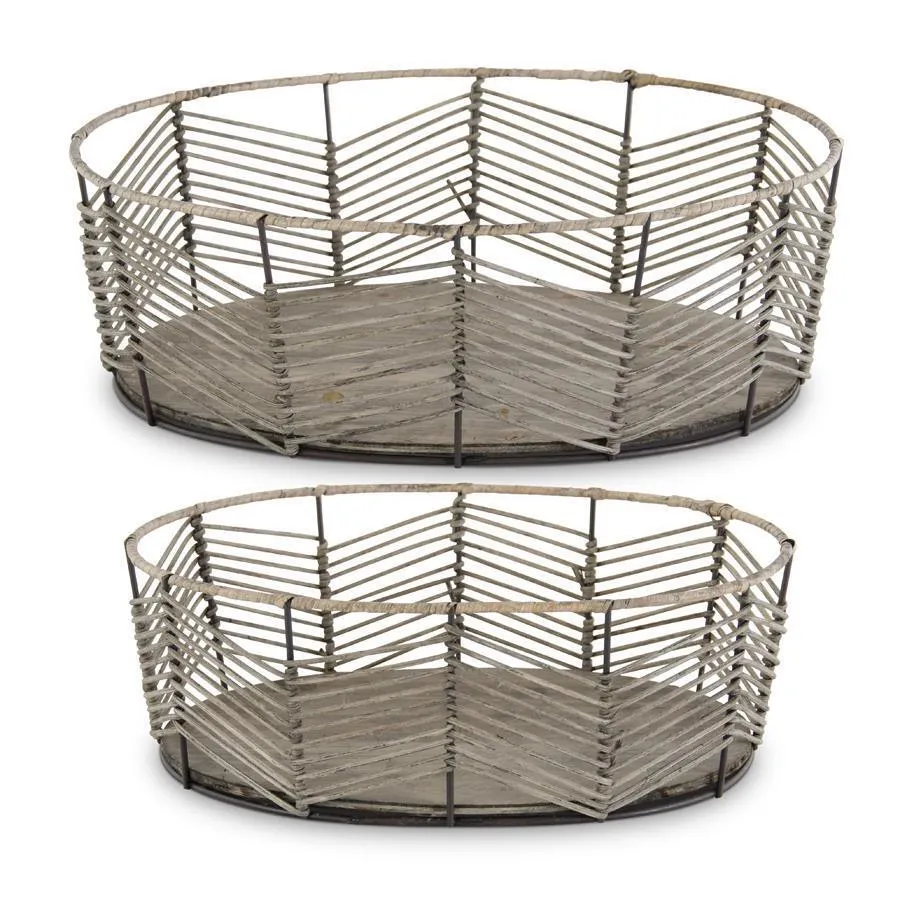 The Oval Chevron Patterned Bamboo & Metal Baskets - Set of 2 may be available at Designer Furniture Gallery in the St. George and St. George areas. Please contact us to check availability.
