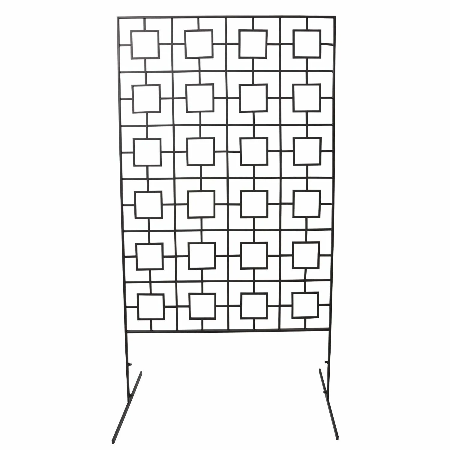 The Wilma Trellis is a modern translation of vintage breeze blocks. With a clean black finish, it can be used indoor or outdoor. Feet can be removed to sit inside a large planter and allow a plant to climb the trellis. Alternately, use inside as a room divider or set pots in front of it and allow the plants to climb it.