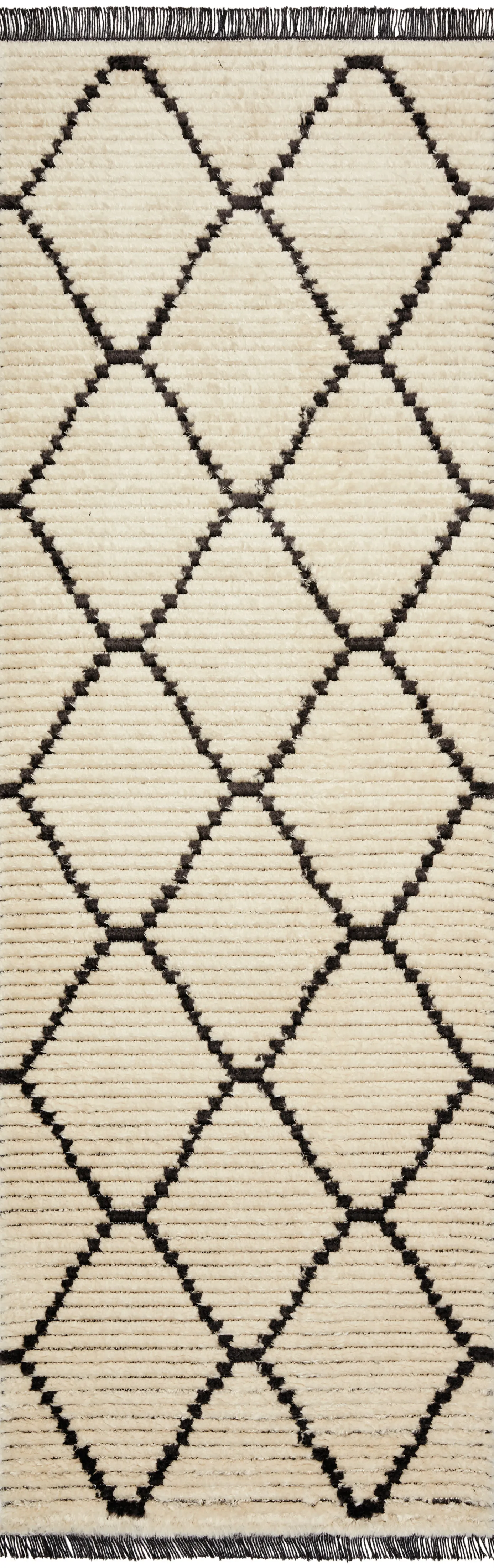 Inspired by the classic Moroccan rug, the Alice Collection is a product of collaboration between Chris Loves Julia x Loloi. Durable, graphic, and soft underfoot, Alice features a high-low texture with warm earthy colors. Power-loomed in Turkey of 100% polyester pile, each rug is finished by a subtle fringe.