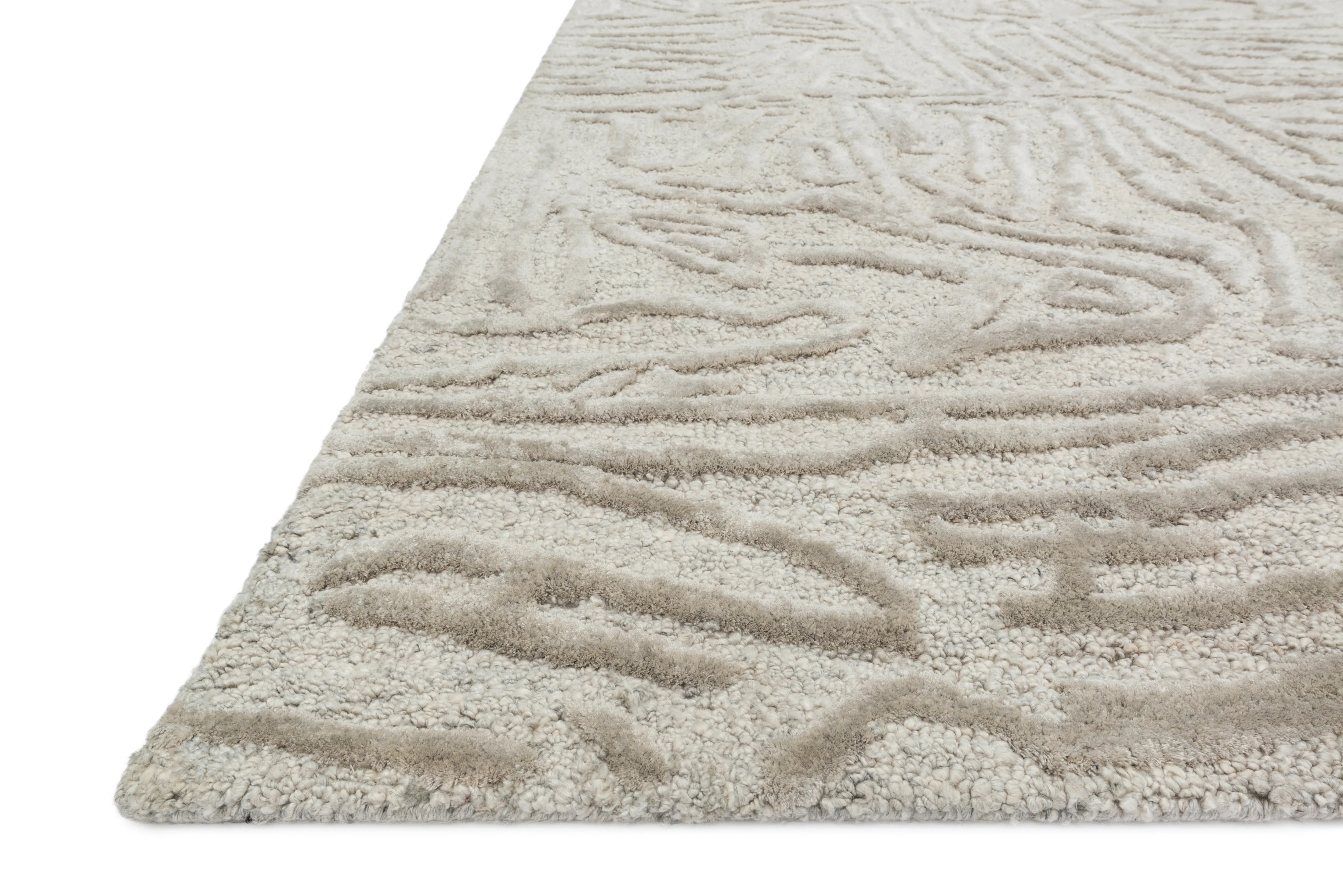 Inspired by nature’s most textured landscapes, the Juneau Collection offers a striking foundation to build your room around. Each piece is hand-tufted with viscose and wool by artisans in India for a silky shine that highlights the high and low effects in the pile.