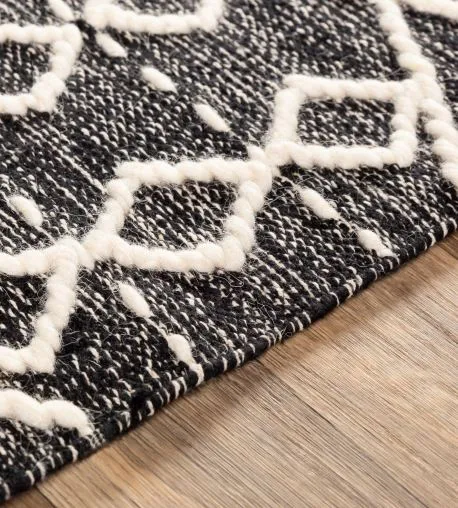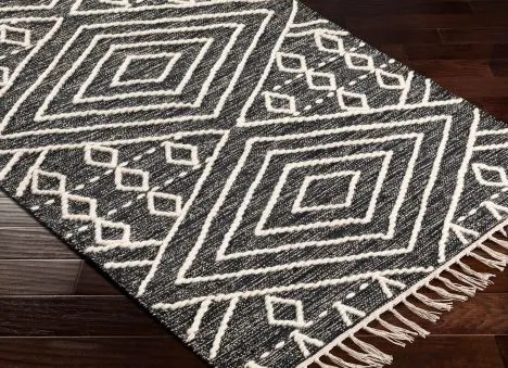 Our rugs from the Bedouin Collection feature striking global inspired designs that endure at the forefront of contemporary trends. These Hand Loomed pieces are exqusisitely crafted and offer natural class and grace to your decor space. Made with Cotton, Wool in India, and has No Pile. Spot Clean Only, One Year Limited Warranty.