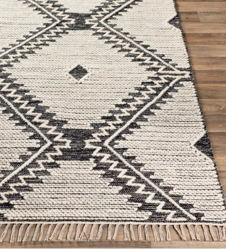 Our rugs from the Bedouin Collection feature striking global inspired designs that endure at the forefront of contemporary trends. These Hand Loomed pieces are exqusisitely crafted and offer natural class and grace to your decor space. Made with Cotton, Wool in India, and has No Pile. Spot Clean Only, One Year Limited Warranty.