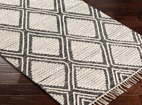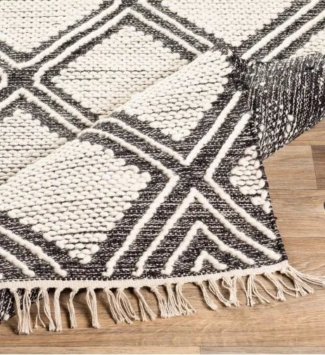 Our rugs from the Bedouin Collection feature striking global inspired designs that endure at the forefront of contemporary trends. These Hand Loomed pieces are exqusisitely crafted and offer natural class and grace to your decor space. Made with Cotton, Wool in India, and has No Pile. Spot Clean Only, One Year Limited Warranty.