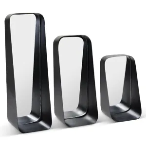 Rectangular Black Metal Mirrored Wall Shelves - Medium