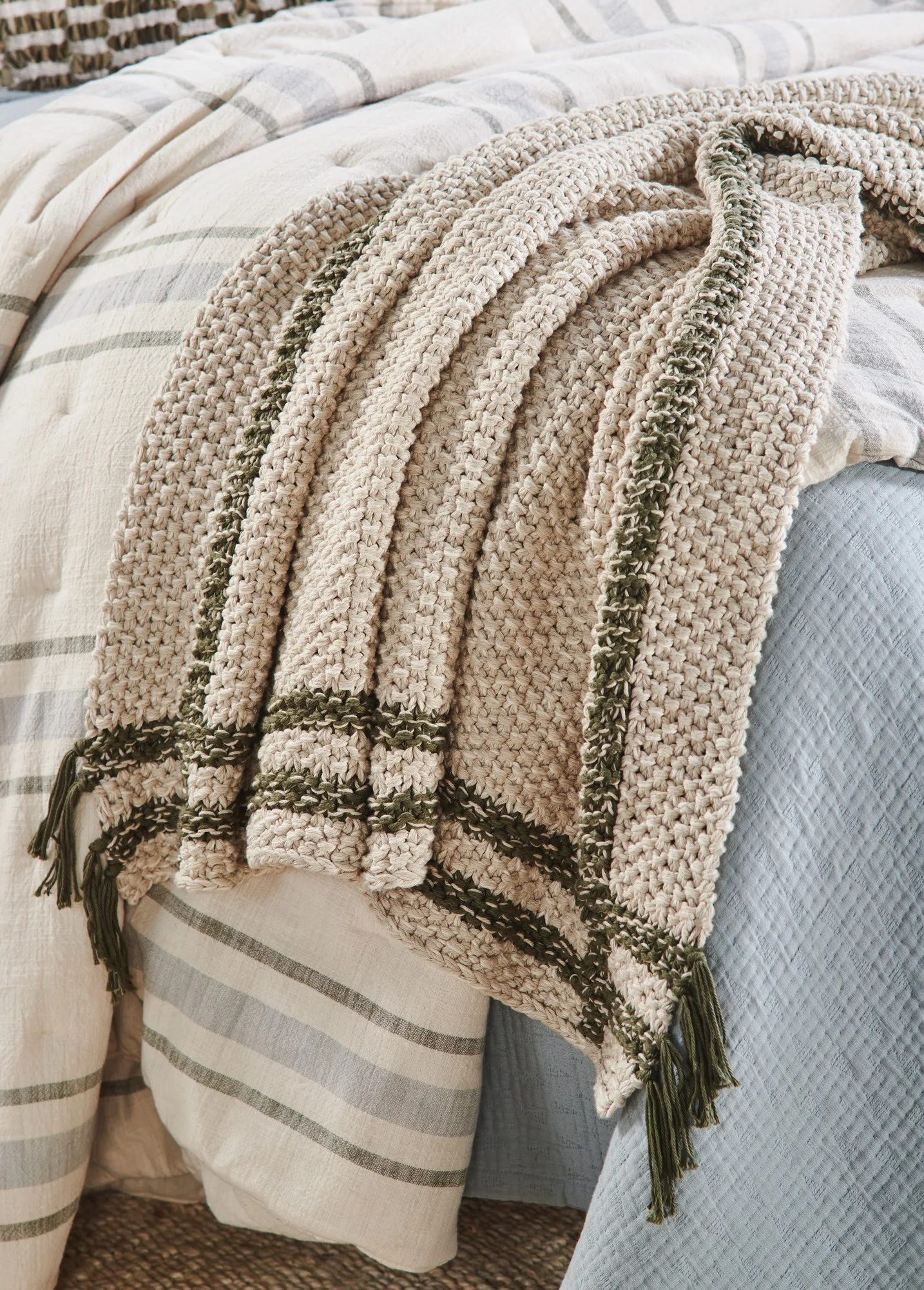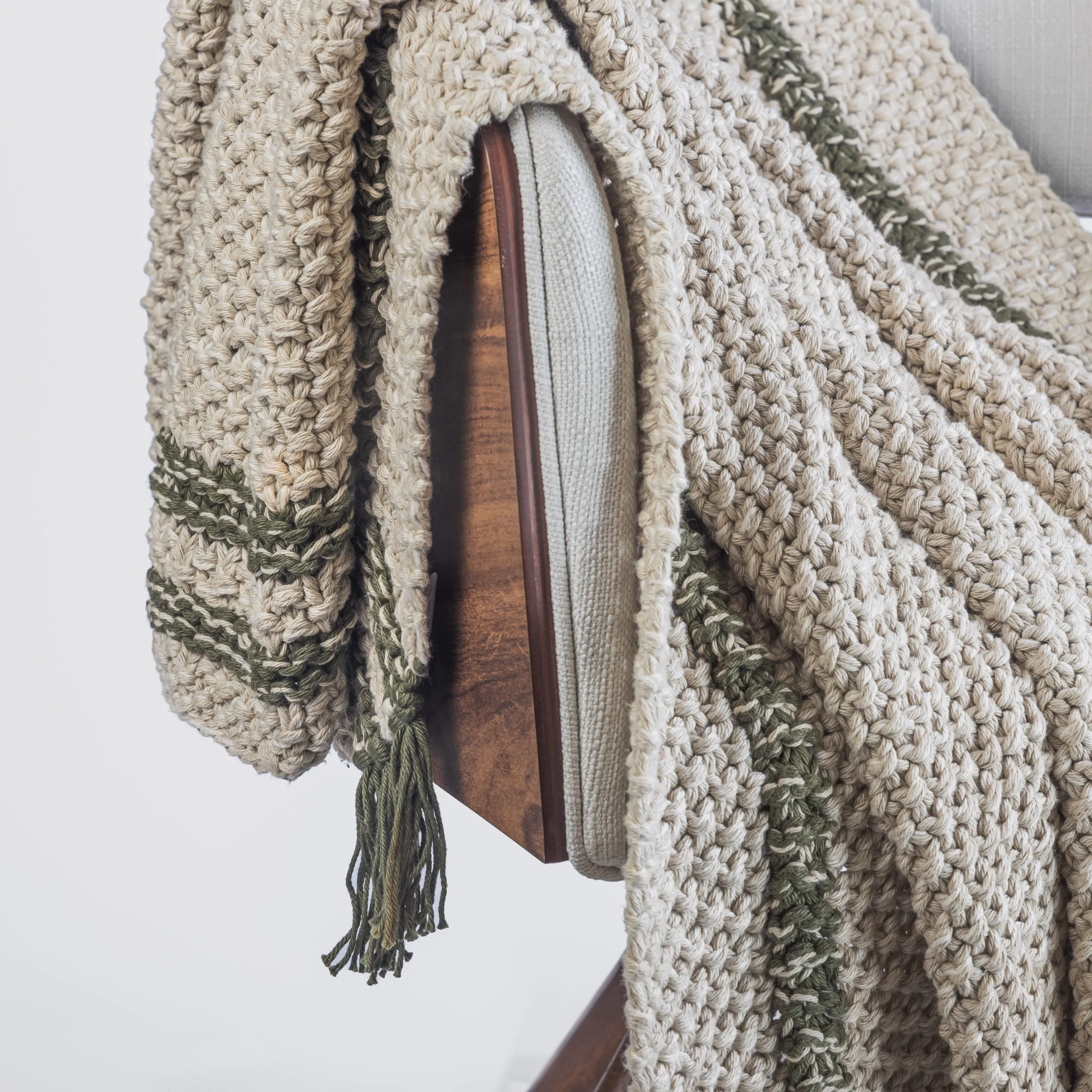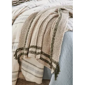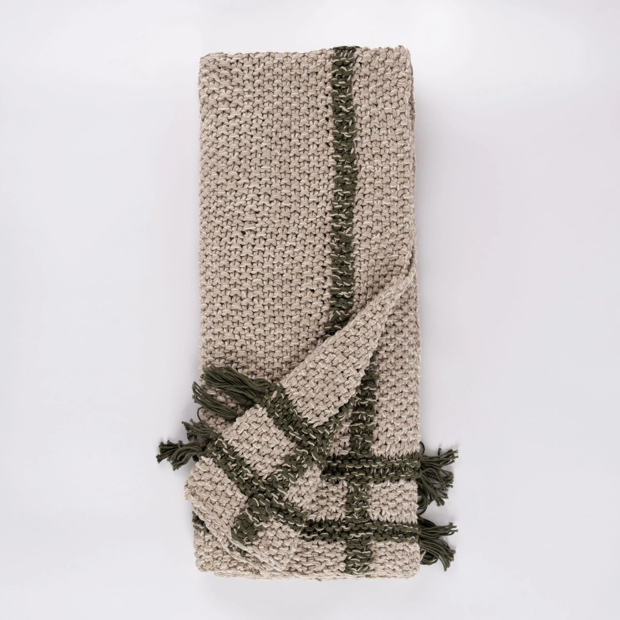 The Skye throw combines cozy charm with artisanal craftsmanship, making it the perfect accent for your space. Hand-knit from chunky cotton, it offers a plush, textured feel that invites relaxation. Its heathered warm light neutral tone is elevated by a subtle windowpane plaid design, adding a hint of structure to its soft, organic appeal. Thoughtfully finished with delicate ties at each color change, the Skye throw showcases attention to detail and a unique touch of character. Whether draped over a chair or layered on your bed, it effortlessly blends warmth and style.