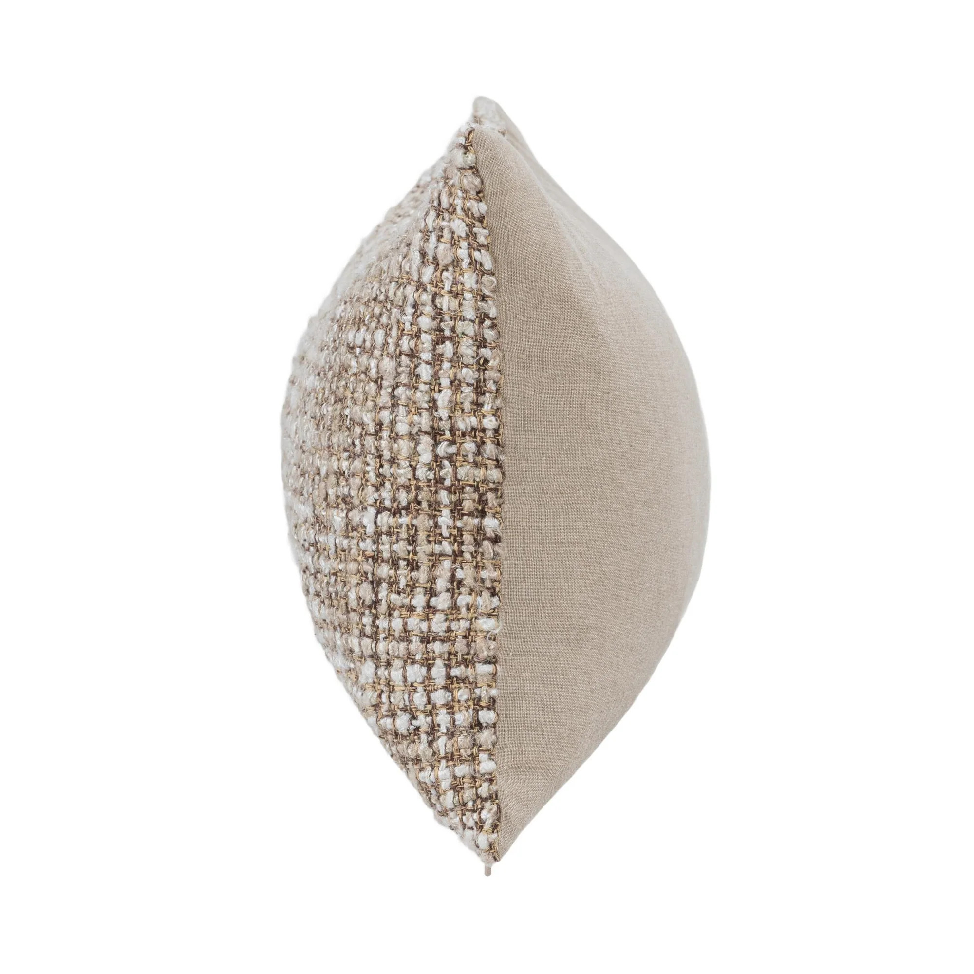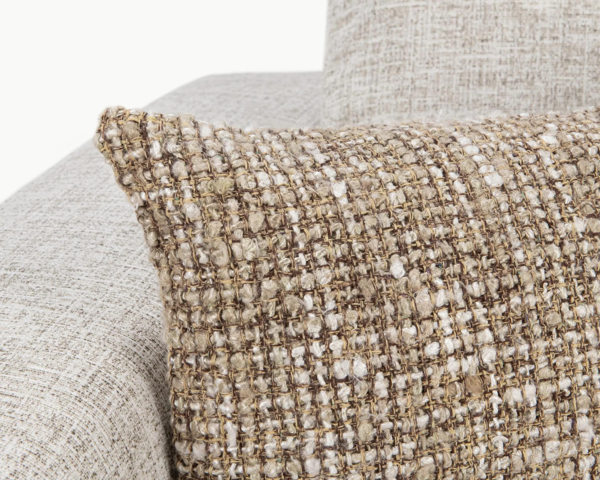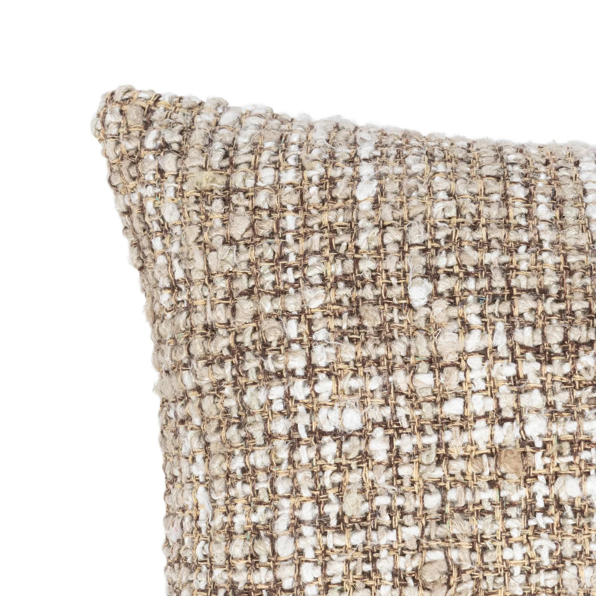 New and recycled fibers weave together to create a textured design with inviting appeal. The woven pattern makes this pillow ideal for mixing and matching with other colors and patterns