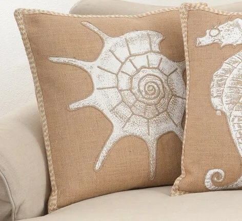 Let the ocean breeze and serenity of the beach inspire your room décor with this cute and chic Shell Design Throw Pillow. It’s the perfect combination of stylish and natural, featuring a large seashell print and 100% jute construction. Use on its own as a statement piece or pair with other throws with similar design.