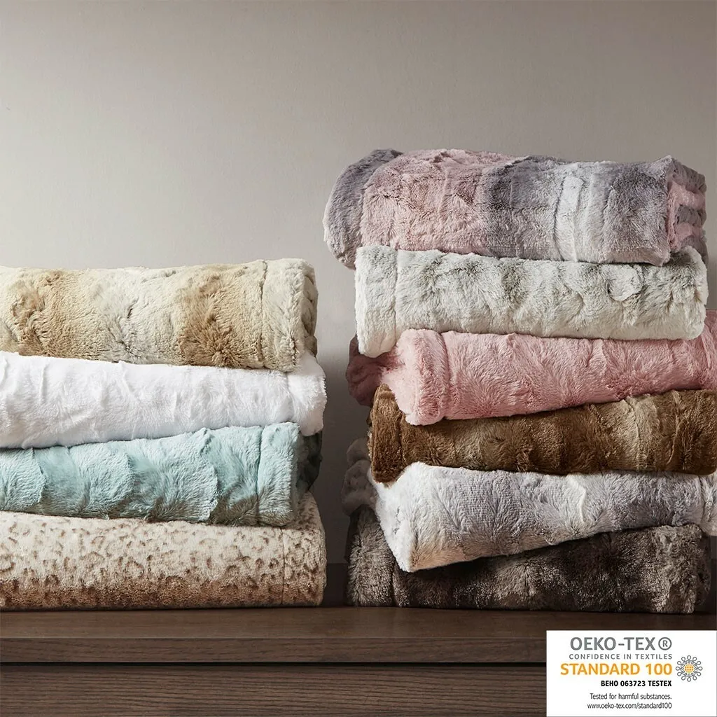 The Madison Park Zuri oversized throw features a luxuriously soft faux fur and reverses to a solid faux mink. This faux fur throw is the perfect modern update and adds a glamorous accent to your home. This throw is machine washable for easy care and OEKO-TEX certified, meaning it does not contain any harmful substances or chemicals to ensure quality comfort and wellness.