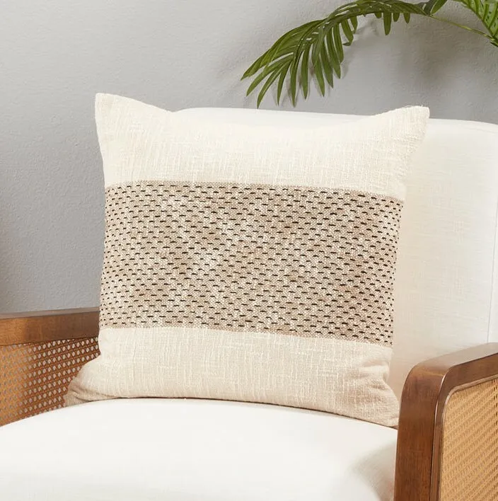 This lovely Banded Throw Pillow is a versatile piece that can truly elevate any décor. The warm tone and textured pattern add a stylish note to every corner. Featuring a smart banded design, this chic throw pillow adds beautiful contrast to your sofa, an old armchair or even your bed.