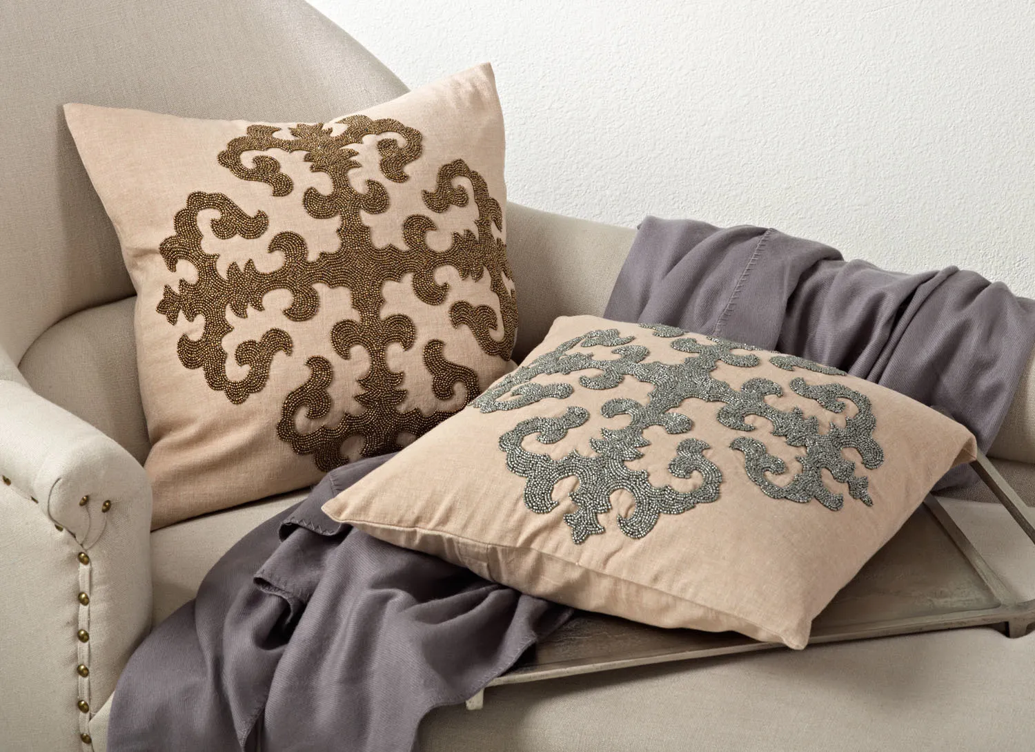 Beaded medallion design pillows. Pillow inserts included. 100% cottonimported