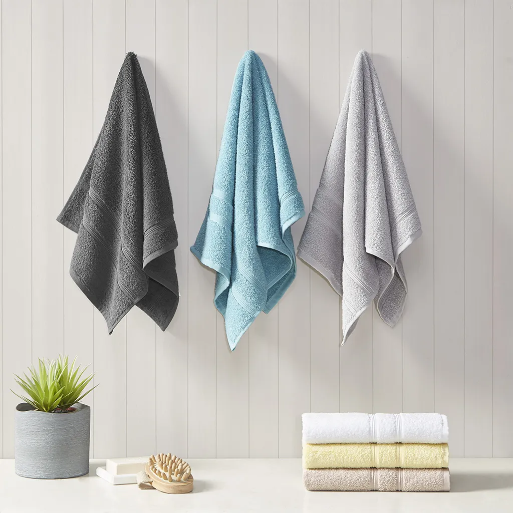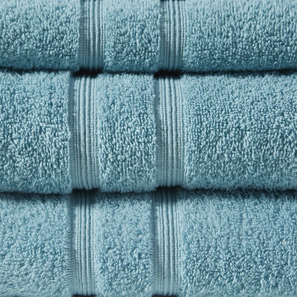 Dry off with the bliss comfort of our 510 Design Aegean 100% Turkish Cotton 6 Piece Towel Set. Made from 100% Turkish cotton, these towels are constructed in 500gsm weight to create a light and soft feel, while absorbent and quick dry at the same time. These towels are also finished with a SILVADUR™ antimicrobial treatment providing built in freshness protection, inhibiting growth of odor causing bacteria, and keeping linen newer, longer. In addition, these towels are also Made in Green by OEKO-TEX certified, meaning it does not contain any harmful substances or chemicals while also using sustainable processes and socially responsible working conditions, for the best in wellness and well-being. Each towel is also finished with a dobby border for a stylish touch and is machine washable for easy care. Set includes: 2 Bath Towels 27"x52", 2 Hand Towels 16"x30", and 2 Wash Towels 13"x13".