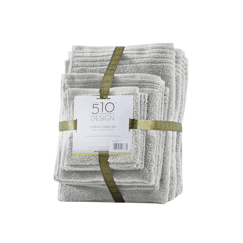 The 510 Design Big Bundle 100% Cotton 12 PC Bath Towel Set provides a simple and easy update to complete your bathroom. This lightweight towel set is made from 100% cotton for a super soft and natural feel, while the zero twist terry construction allows for the towels to dry quickly. Each towel is finished with an Ultra Fresh anti-microbial treatment for quality health and comfort - providing odor control, inhibiting bacteria buildup, and keeping linen fresher, longer. Active for multiple washes, this treatment implements a superior long-lasting durable performance. In addition, these towels are also Made in Green by OEKO-TEX certified, meaning it does not contain any harmful substances or chemicals while also using sustainable processes and socially responsible working conditions, for the best in wellness and well-being. Offering an incredible value, this 12 piece cotton bath towel set is machine washable for easy care and adds the perfect finishing touch to any bathroom. Set includes: 4 standard 28x52" bath towels, 4 standard 16x26" hand towels, and 4 standard 12x12" wash towels.