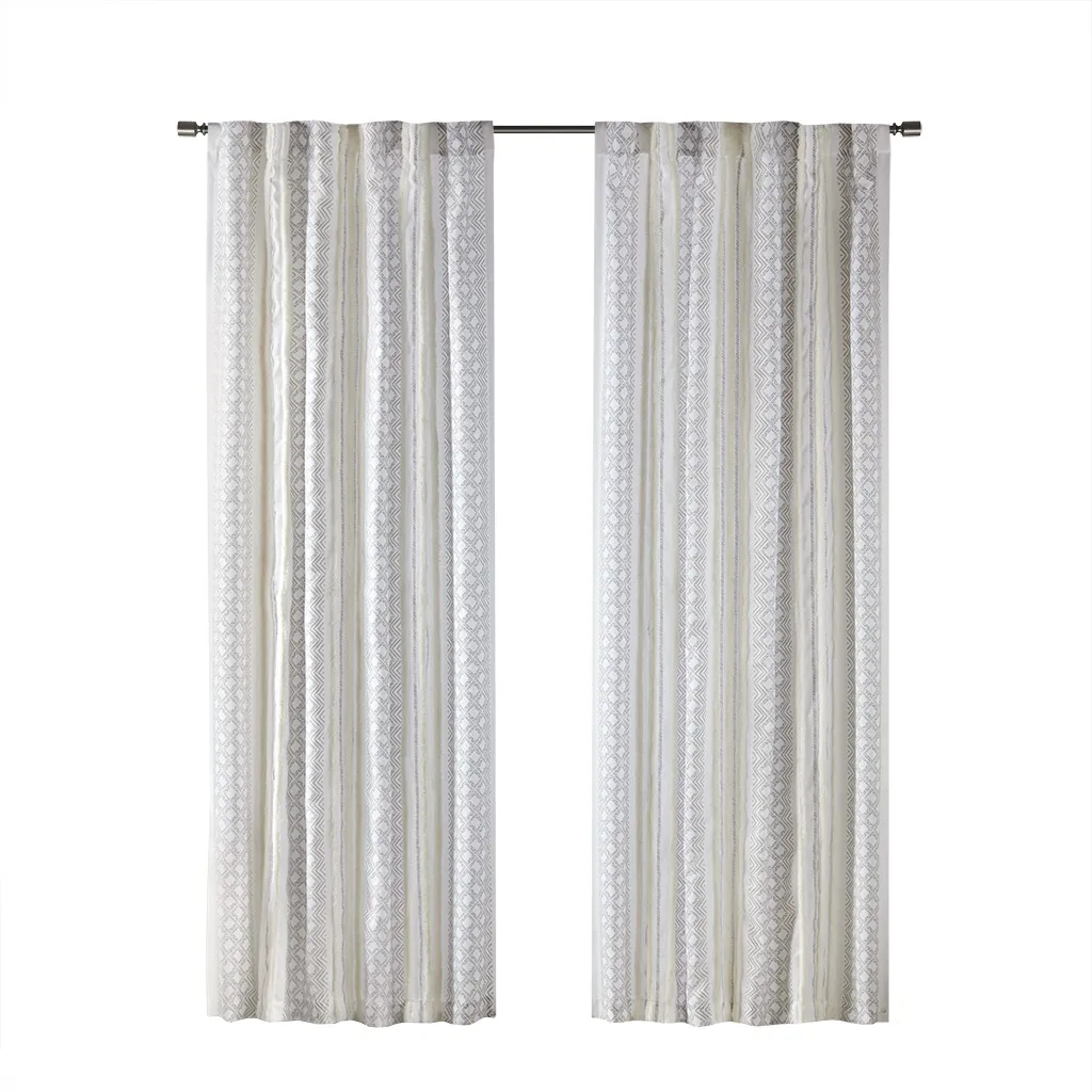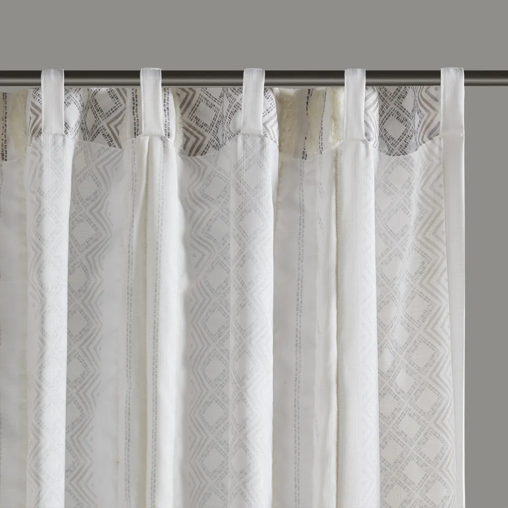 Transform your living spaces with light filtering curtains in white curtains, ideal for enhancing the ambiance of living rooms, bedrooms, and kitchens. Designed with back tabs for easy hanging on curtain rods, these window curtains bring a boho style to your home decor with a printed window panel featuring geometric and shu velveteen trim. Made from 100% polyester with a textured artisanal look and feel, each set includes two panels measuring 50"W x 95"L, offering ample coverage for most windows.