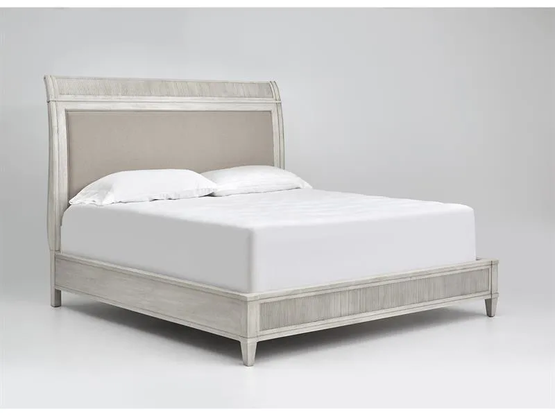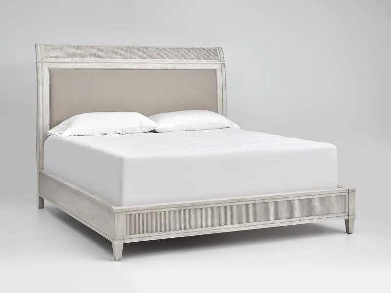 When designing this group we took style cues from traditional architecture and modernized them with crisp lines and soft color tones. Our intent was to design a modern cottage bedroom that is at home in a relaxed casual, yet traditional home by the water or in the country. The many design elements include tight reeding on posts and panels, proud posts that provide depth and architecture and captured overlay panels or gentle sleigh shapes on the beds. Beads have been squared off for a cleaner “New Traditional” vibe. The upholstered beds feature Culp's Dinara fabric. Making the most of the classic oversized basket weave, Dinara features a varied yarn blend of polyester, rayon, and linen. This yarn dyed cloth is sophisticated yet simple, creating a casually comfortable look.