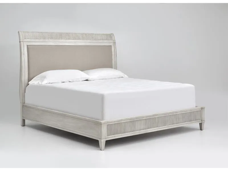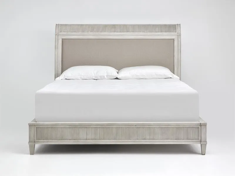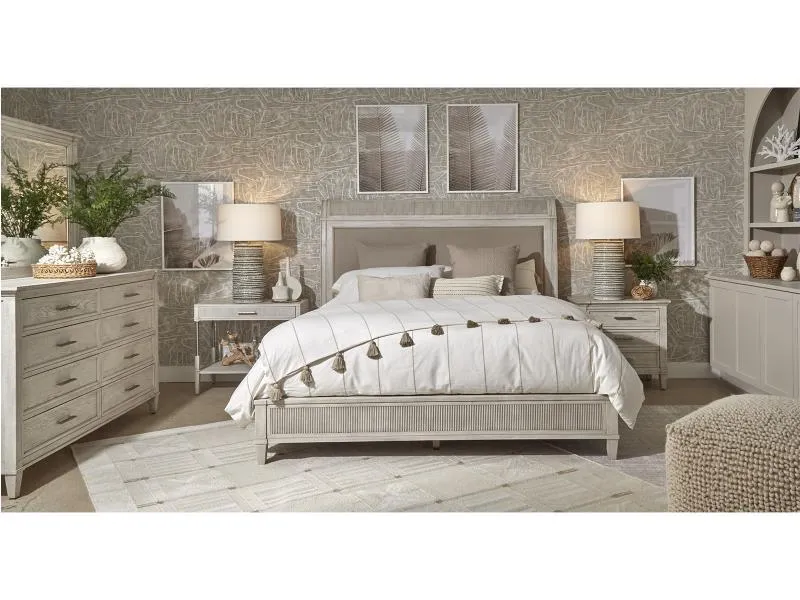 When designing this group we took style cues from traditional architecture and modernized them with crisp lines and soft color tones. Our intent was to design a modern cottage bedroom that is at home in a relaxed casual, yet traditional home by the water or in the country. The many design elements include tight reeding on posts and panels, proud posts that provide depth and architecture and captured overlay panels or gentle sleigh shapes on the beds. Beads have been squared off for a cleaner “New Traditional” vibe. The upholstered beds feature Culp's Dinara fabric. Making the most of the classic oversized basket weave, Dinara features a varied yarn blend of polyester, rayon, and linen. This yarn dyed cloth is sophisticated yet simple, creating a casually comfortable look.