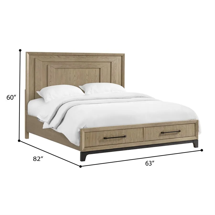 The Sutton Place bedroom collection embodies relaxed contemporary style with a focus on the natural beauty of oak. . Crafted with tight-grain, matched oak veneers over hardwood solids, each piece features a warm two-tone finish of caramel atop a cocoa base. Dark bronze bar pulls add subtle contrast, while select pieces showcase asymmetrical drawer configurations for unique visual appeal. The collection is anchored by a framed panel headboard paired with a panel or storage footboard, bringing a sophisticated yet comfortable look to your bedroom space.