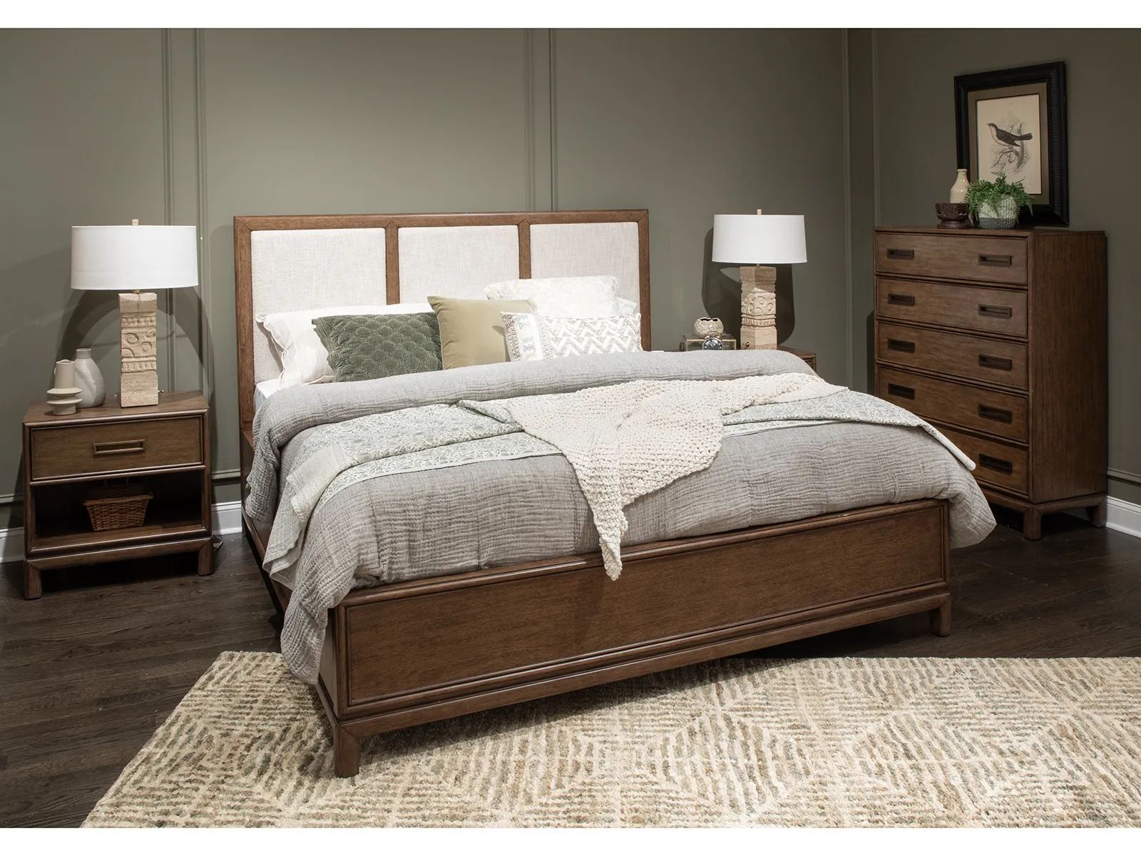 Ridgefield Complete King Panel Bed w/Upholstered Headboard