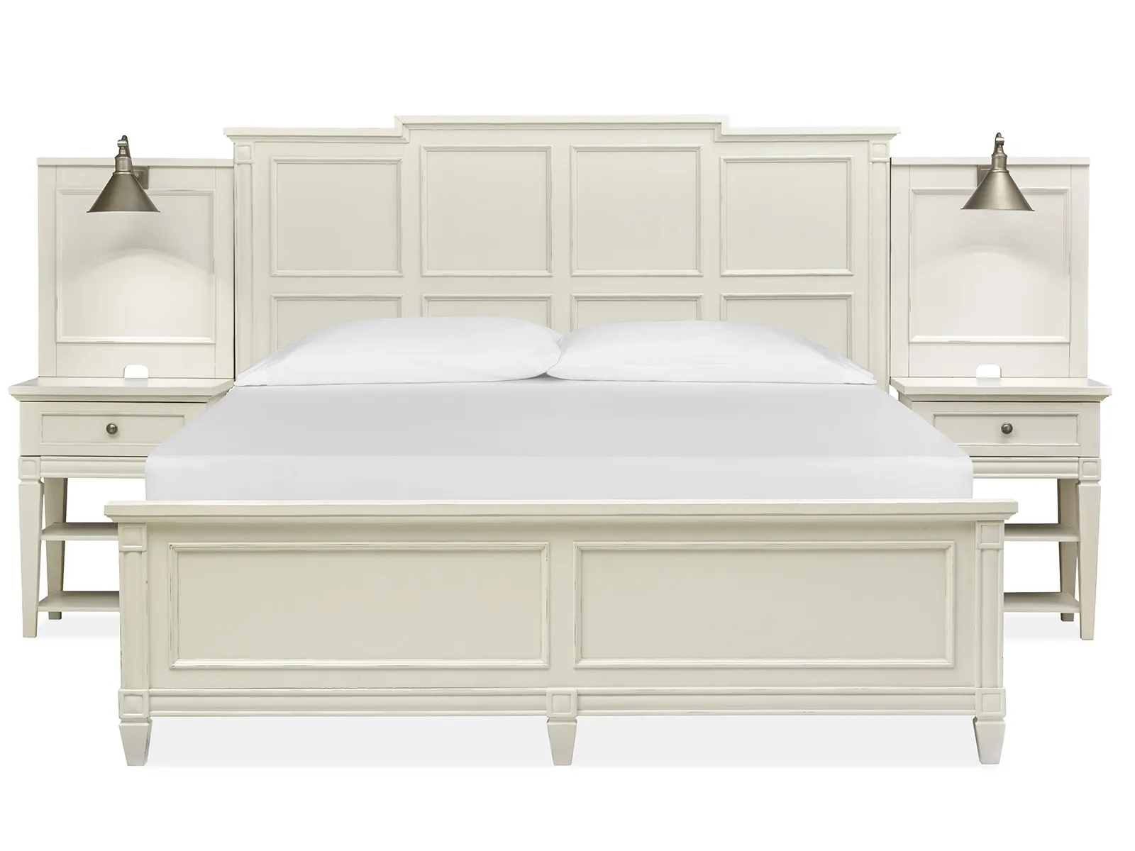 - configuring with 2 open nightstands and hutches on sides