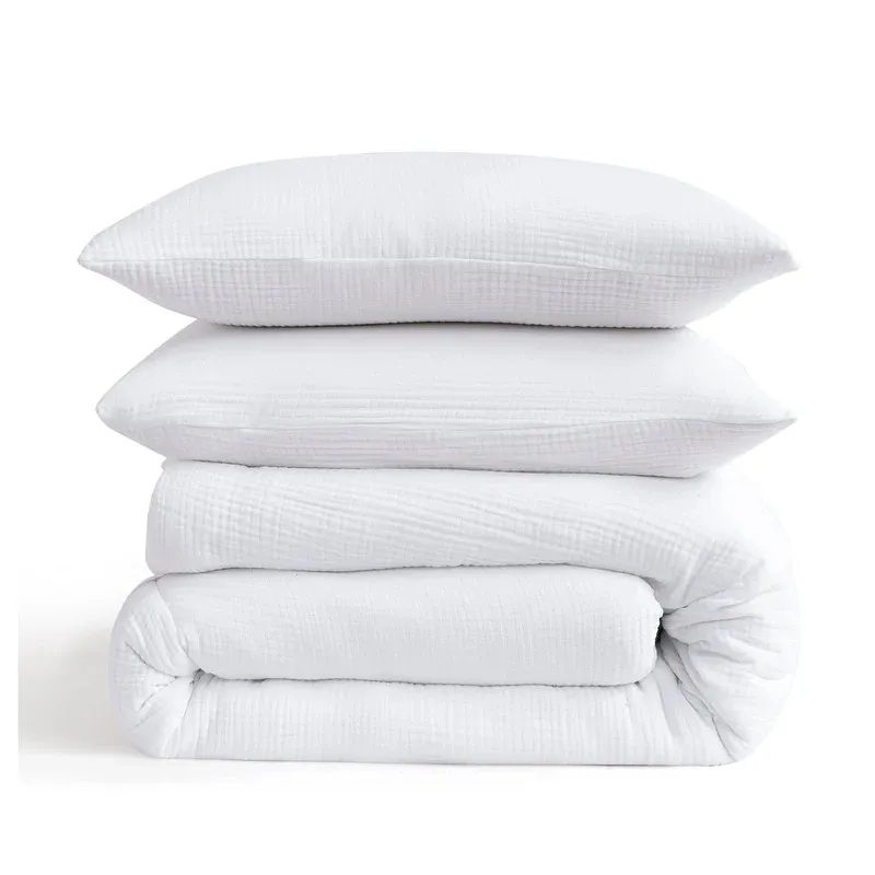 Embrace refined simplicity with the Cotton Voile Comforter Set. Crafted from voile—a lightweight, softly sheer cotton fabric beloved for its silky hand—this comforter features a four-layer gauze construction on the front, creating a lightweight and cozy drape that envelopes you in dreamy luxury. The back is made of high-quality cotton, providing extra warmth compared to its blanket counterpart and making it ideal for chilly seasons. Available in serene white, natural tan, warm sable and neutral storm blue, it offers a soothing palette to suit any aesthetic. Best layered with our Stonewashed Gauze or Derby Collections, elevating your space with casual elegance.