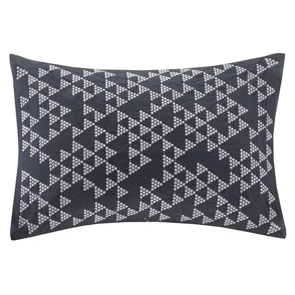 Add a little shine to your room with the INK+IVY Thea Oblong Pillow. This navy blue base provides a modern update with metallic silver embroidery in a geometric pattern.