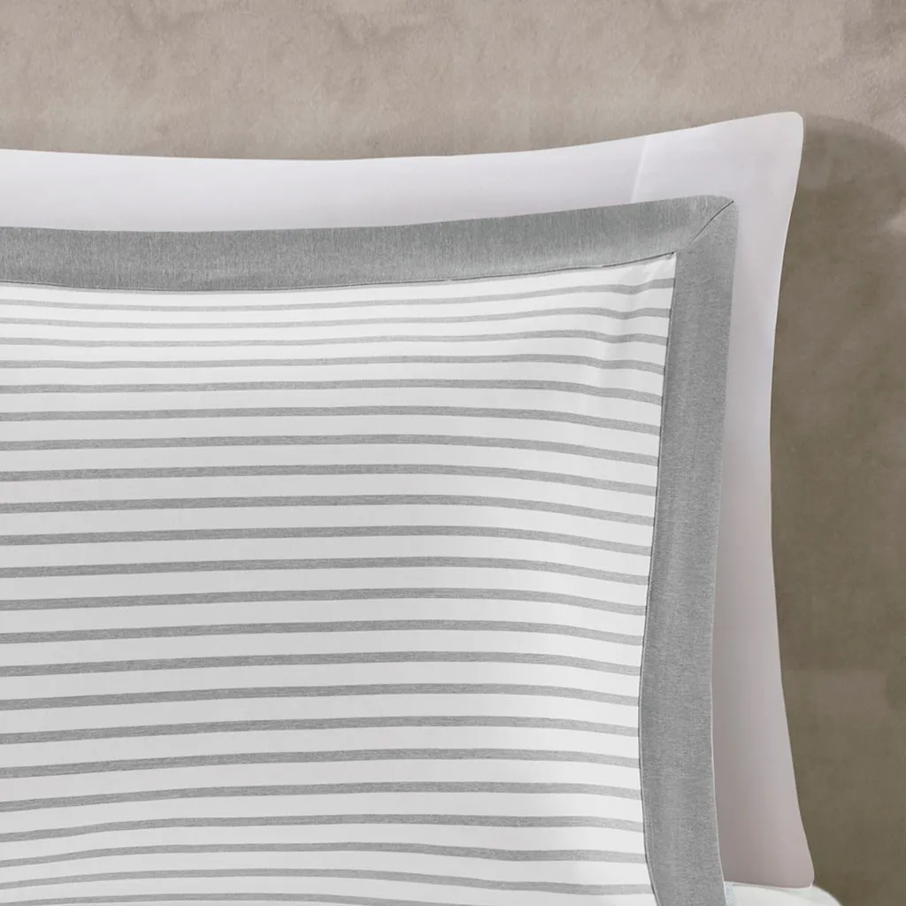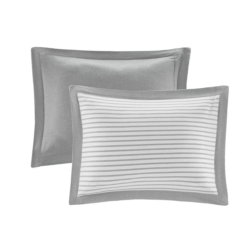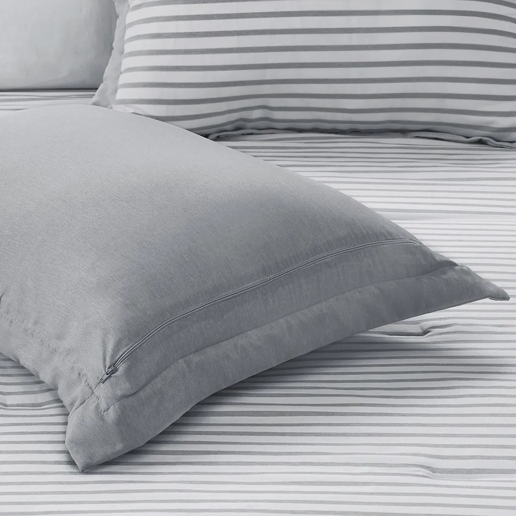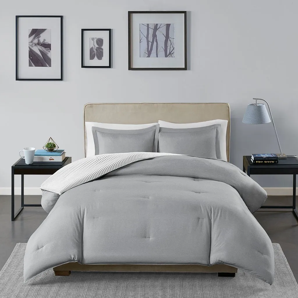 The Madison Park Essentials Hayden Reversible Down Alternative Comforter Mini Set gives your bedroom a fresh casual update. Sporting a grey striped pattern, the comforter and shams reverse to a solid grey allowing you to mix and match styles for the perfect look. Machine washable, this reversible comforter is made from ultra-soft yarn dyed fabric that is sure to keep you warm all year round.