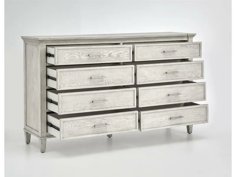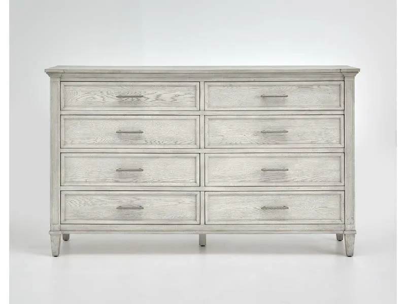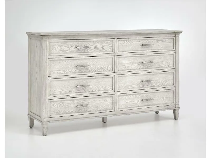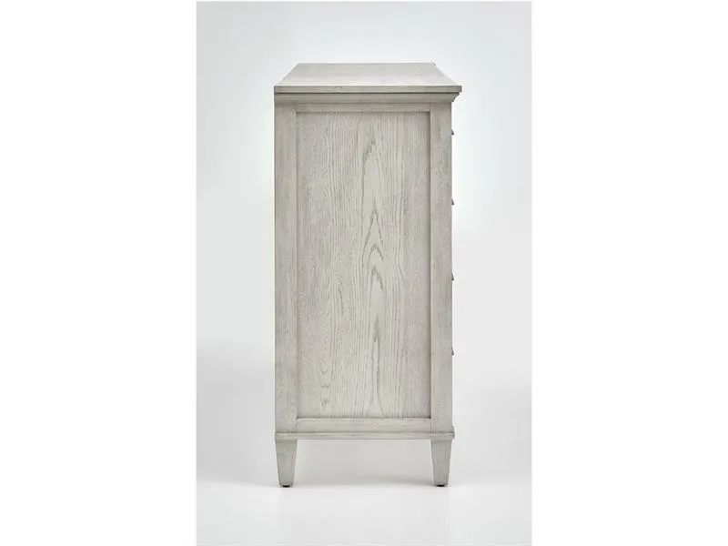 When designing this group we took style cues from traditional architecture and modernized them with crisp lines and soft color tones. Our intent was to design a modern cottage bedroom that is at home in a relaxed casual, yet traditional home by the water or in the country. The many design elements include tight reeding on posts and panels, proud posts that provide depth and architecture and captured overlay panels or gentle sleigh shapes on the beds. Beads have been squared off for a cleaner “New Traditional” vibe. The upholstered beds feature Culp's Dinara fabric. Making the most of the classic oversized basket weave, Dinara features a varied yarn blend of polyester, rayon, and linen. This yarn dyed cloth is sophisticated yet simple, creating a casually comfortable look.