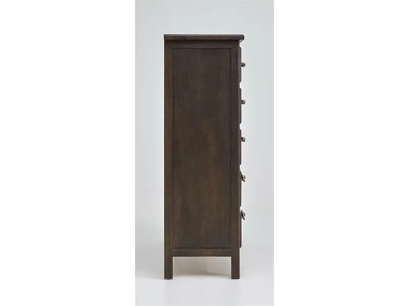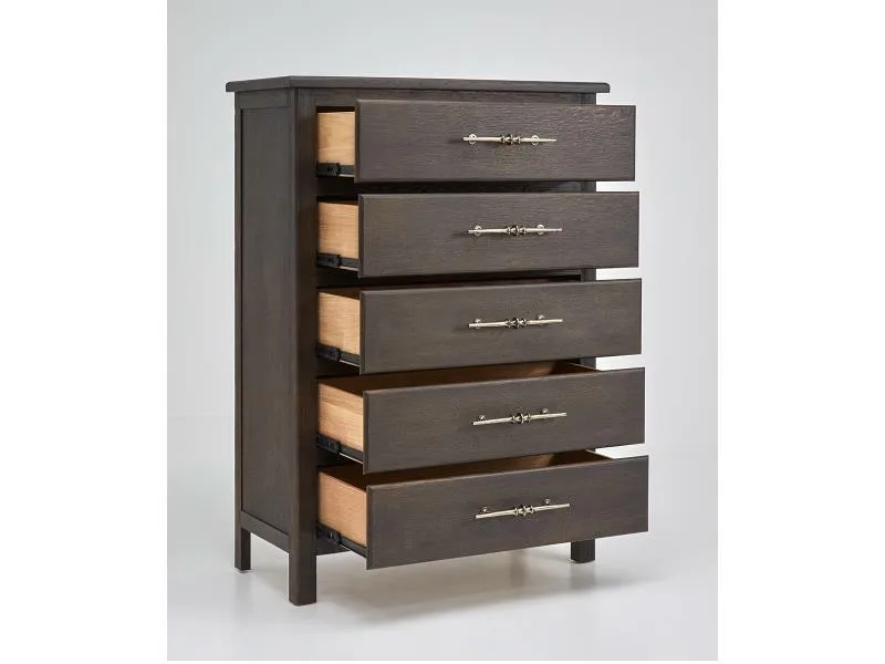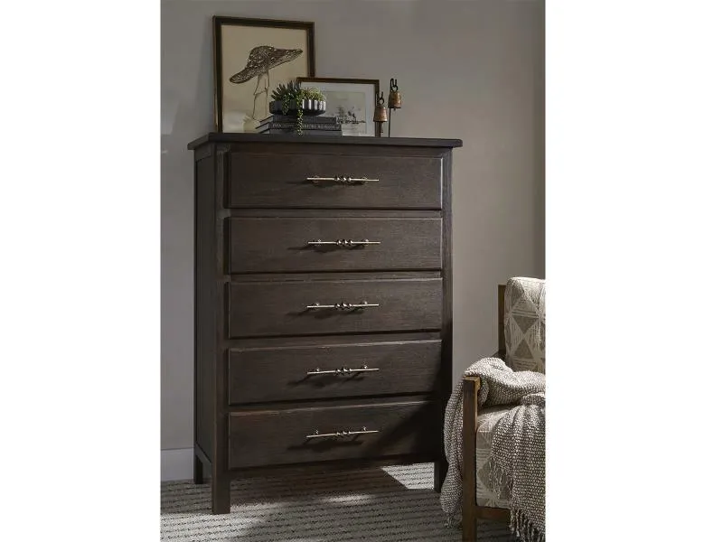 We envision this design complementing homes with a casual transitional aesthetic. Featuring craftsman style design motifs found in the great lodges and cabins across the countryside, the brown finish speaks to a rustic farmhouse aesthetic. Key design features include contemporary parsons style legs, proud drawer fronts and generously scaled drawer pulls inspired by a Belgian antique door handle.
