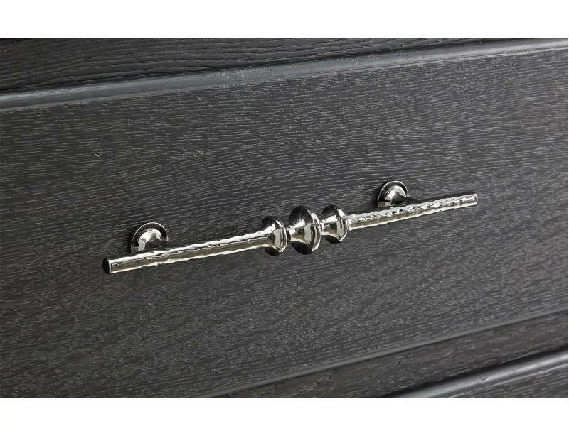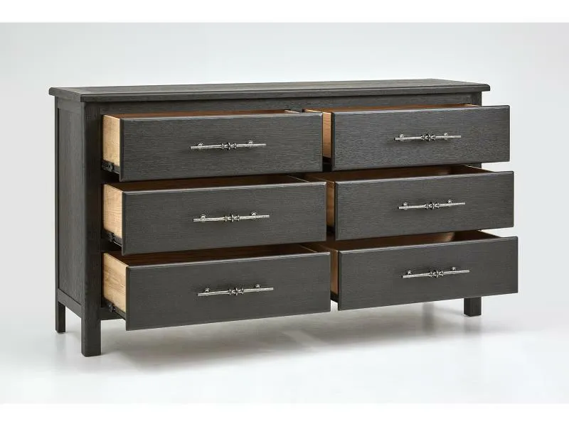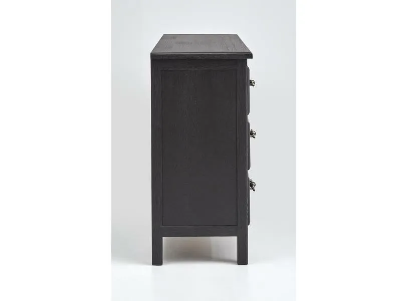 We envision this design complementing homes with a casual transitional aesthetic. Featuring craftsman style design motifs found in the great lodges and cabins across the countryside, the black finish is at home in a modern chalet environment. Key design features include contemporary parsons style legs, proud drawer fronts and generously scaled drawer pulls inspired by a Belgian antique door handle.